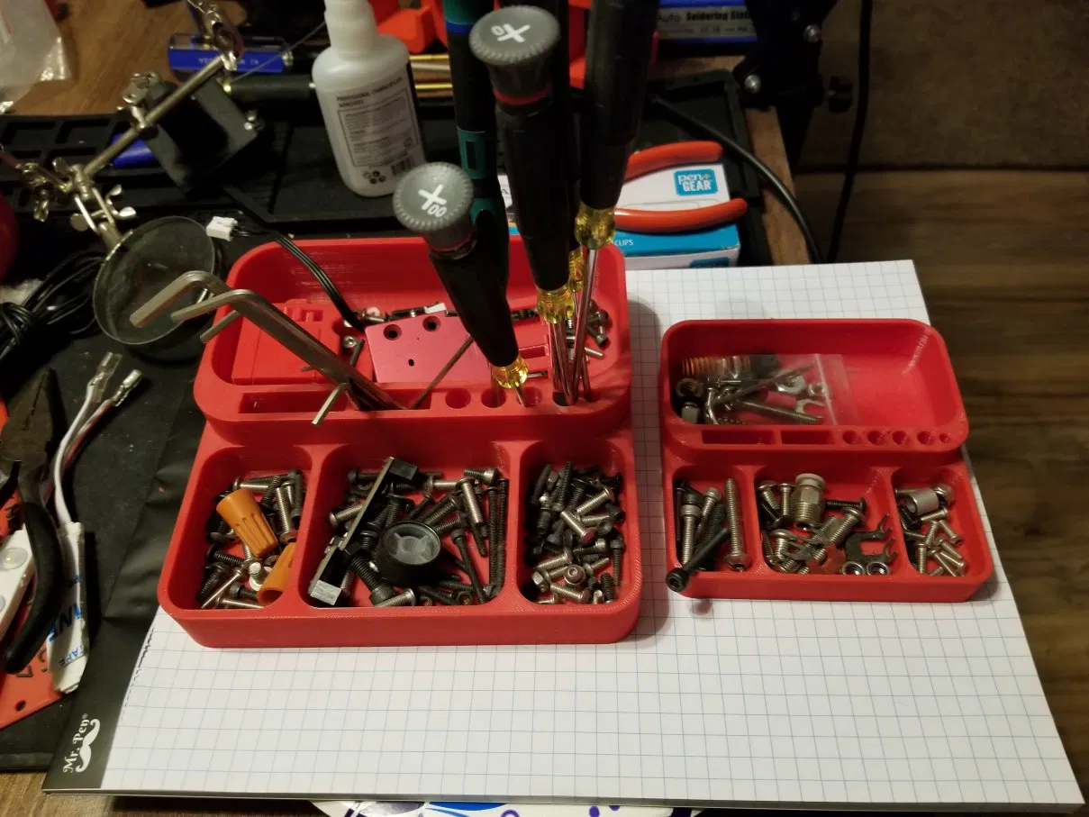 Đây là một cái khay nhỏ với nhiều ngăn để đựng ốc vít hoặc các bộ phận nhỏ bị rơi vãi, tránh làm mất chúng. Bạn có thể tùy chỉnh kích thước cho phù hợp với nhu cầu. Cảm ơn.