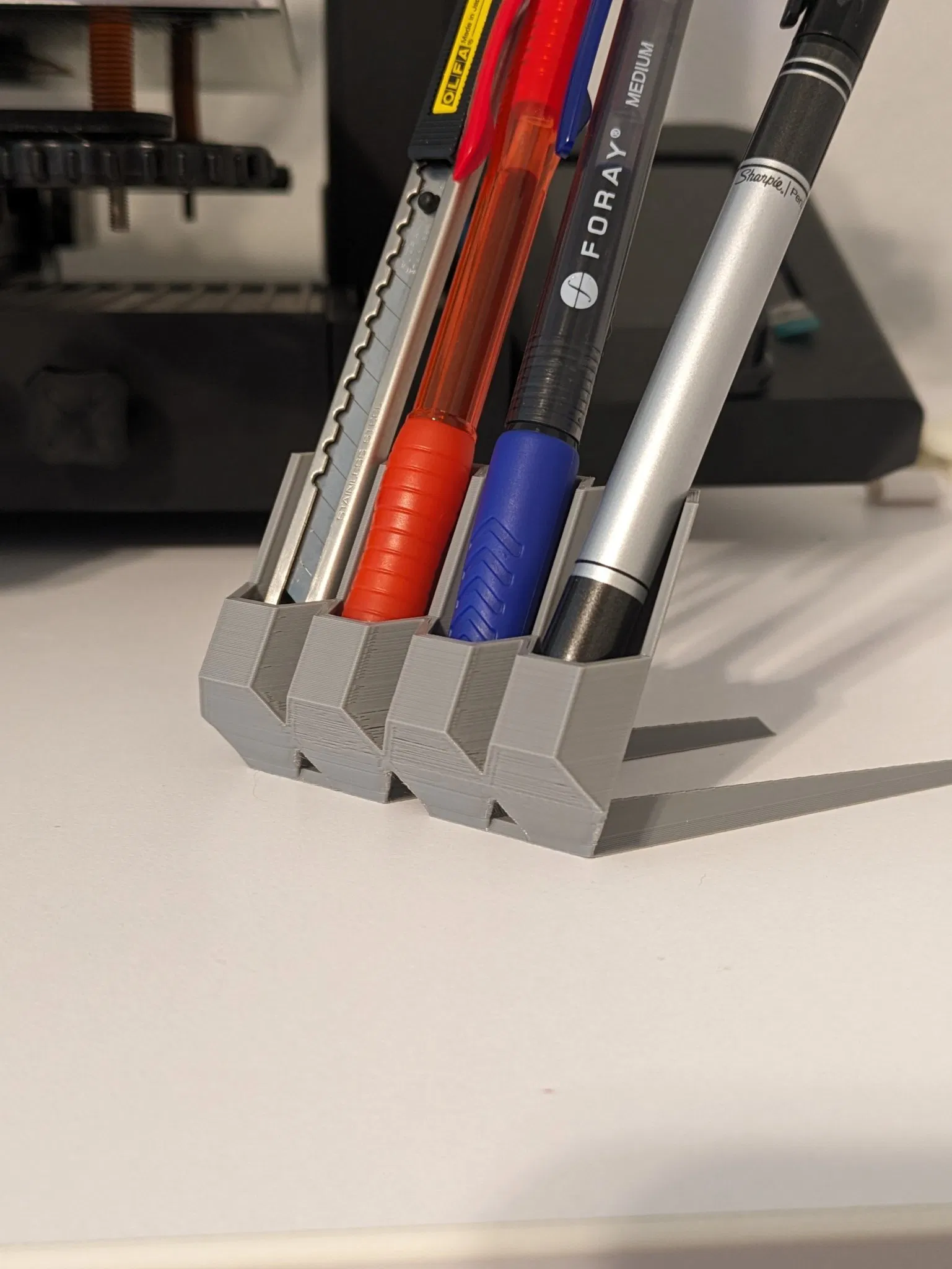 Tôi rất thích thiết kế gốc nhưng cần nó có thể chứa bốn món đồ. Tôi chưa bao giờ chỉnh sửa tệp trước đây nên tôi đã đưa nó vào SelfCAD, nhân bản nó, di chuyển hai cái lại gần nhau để chúng chạm vào nhau và sau đó kết hợp chúng thành một món đồ. Xuất sang tệp STL và nó in ra rất tốt.