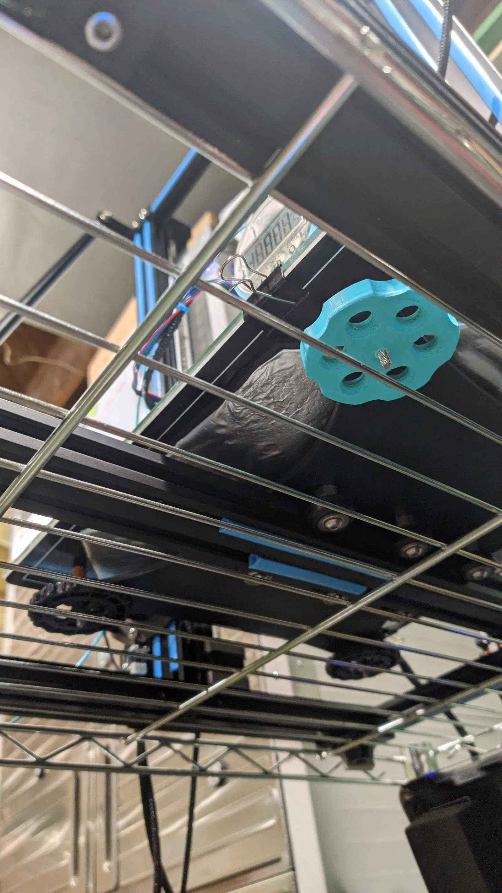 Thiết kế dựa trên cái lẫy ren M3x10 y chang cái núm zin đi kèm máy CR-10 của tui. Có thêm một miếng nhựa nhỏ ngay chỗ lẫy ren để nó giữ chặt, giống như cái nắp nyloc vậy đó, khỏi bị bung ra.