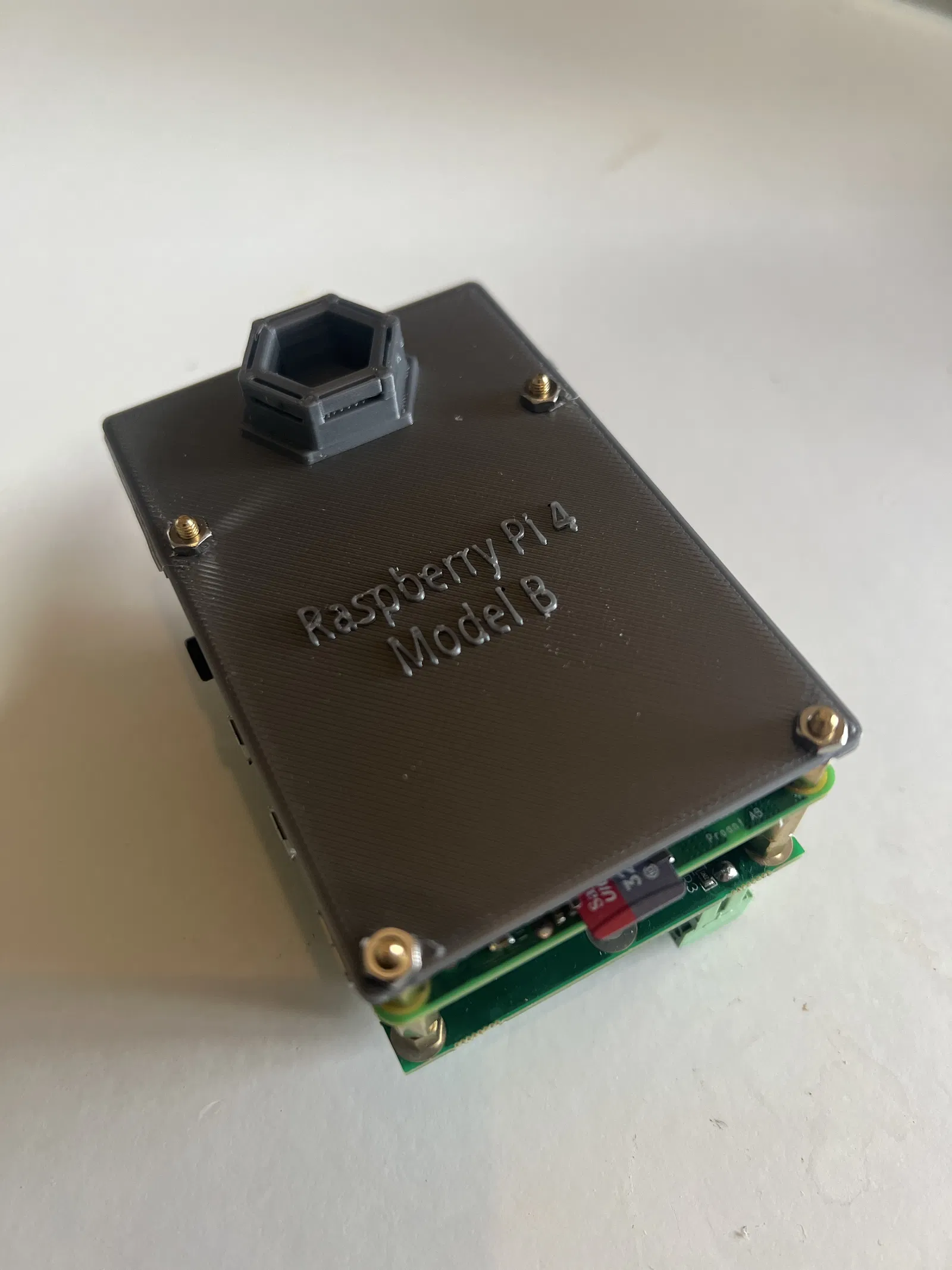 Giá đỡ HSW dành cho Raspberry Pi 4 Model B. Dùng 4 ốc VESA M2.5 dài 6mm để gắn. Hình ảnh có một con Raspberry Pi gắn PiHat.