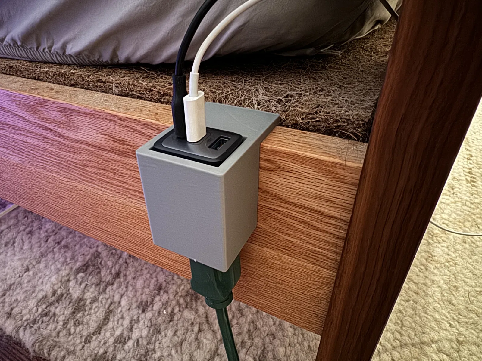 Cái đế giữ cục sạc Anker 735 (Nano II 65W) đơn giản, được thiết kế để gắn lên khung giường có kích thước 1 inch (25mm). Không cần supports, in ở độ dày lớp 0.3mm là an toàn.