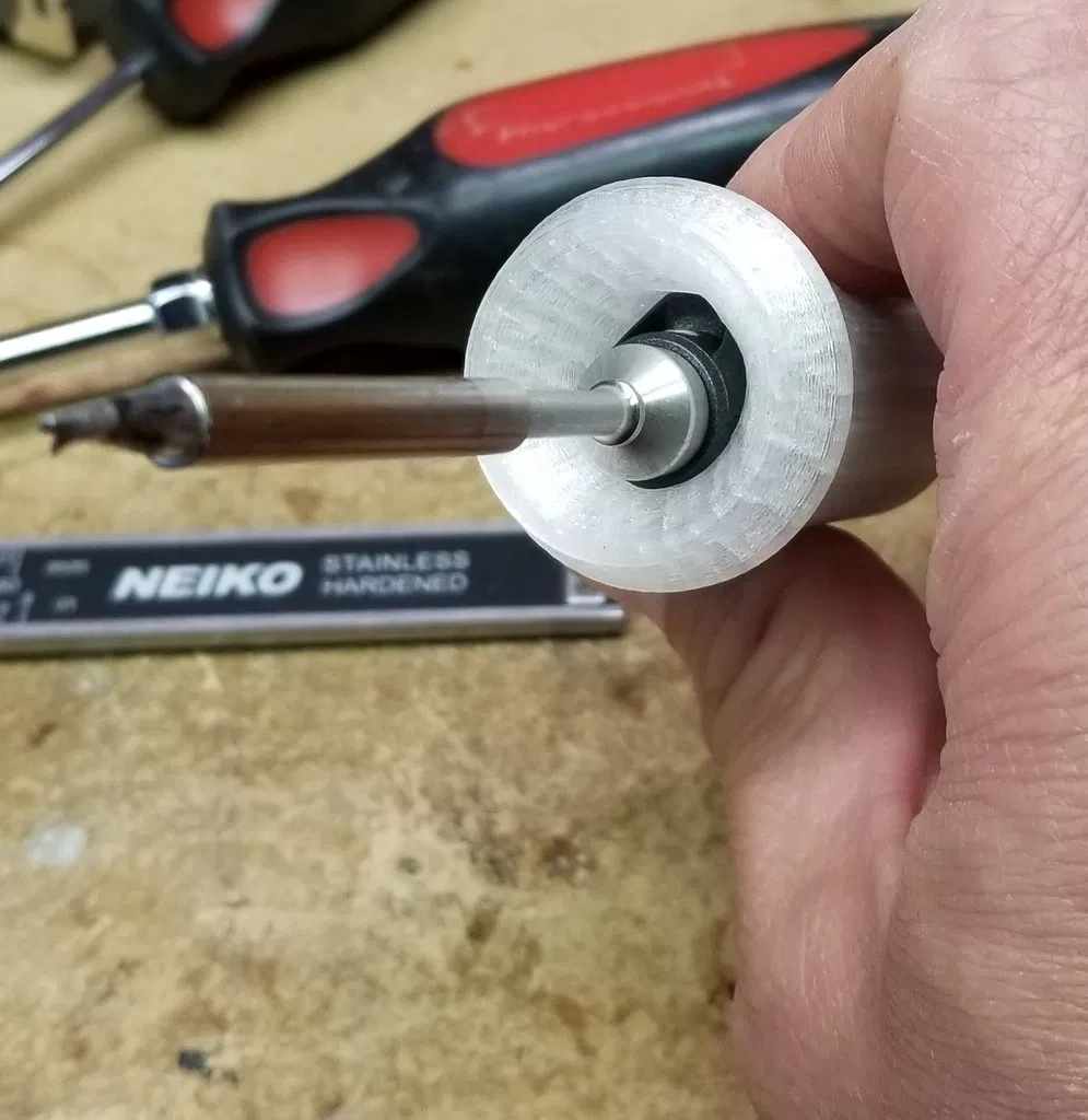 Cải thiện cảm giác cầm nắm mỏ hàn TS100 bằng tay cầm in TPU. Tay cầm này ôm vừa vặn, dễ bấm nút và tương thích với đế Weller. Lưu ý chỉ in bằng TPU hoặc nhựa dẻo tương tự.