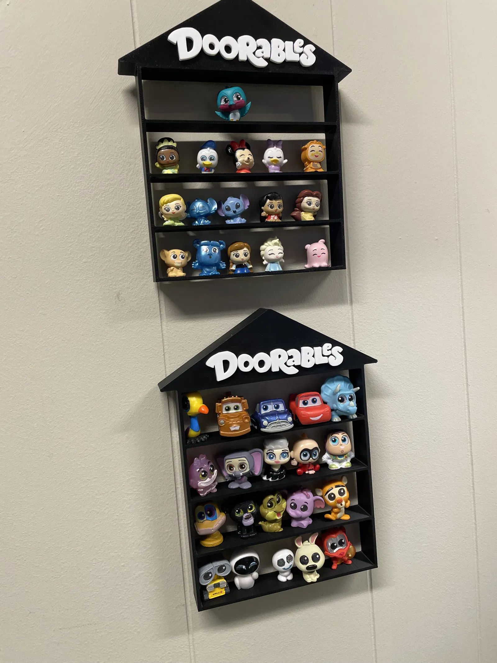 Bạn gái mê tít mấy mô hình bí ẩn Disney nên mình làm cái kệ cho cổ. Bản thiết kế này chỉnh sửa từ kệ dưới ảnh, đã scale lên để khớt với nhiều loại mô hình Doorables hơn. In bằng P1S, chỉnh màu trong Bambu Studio.