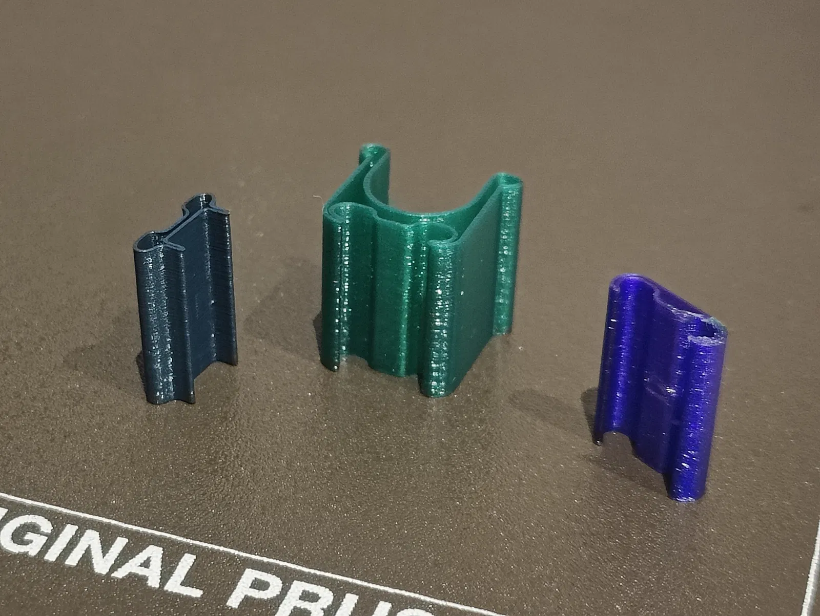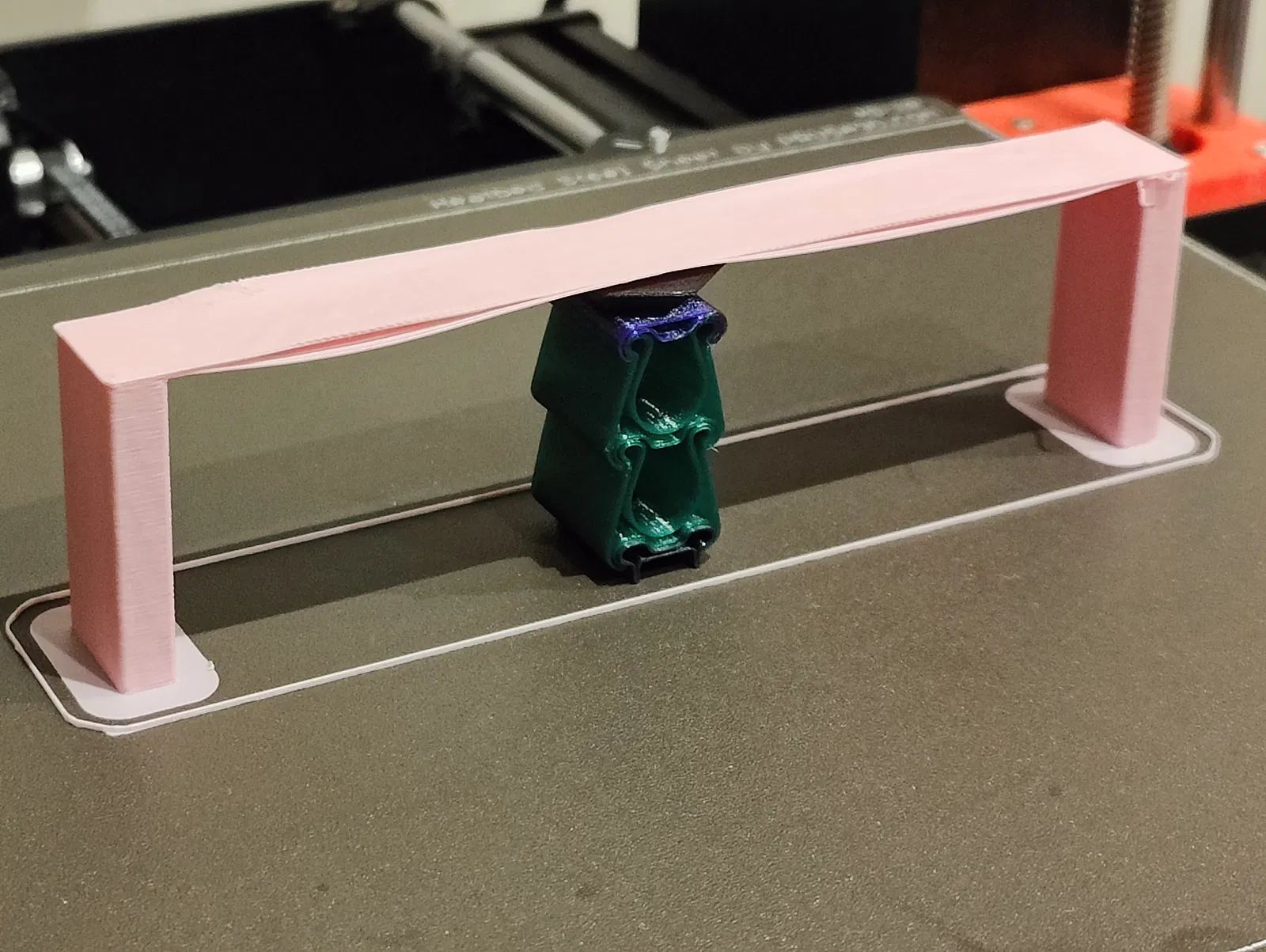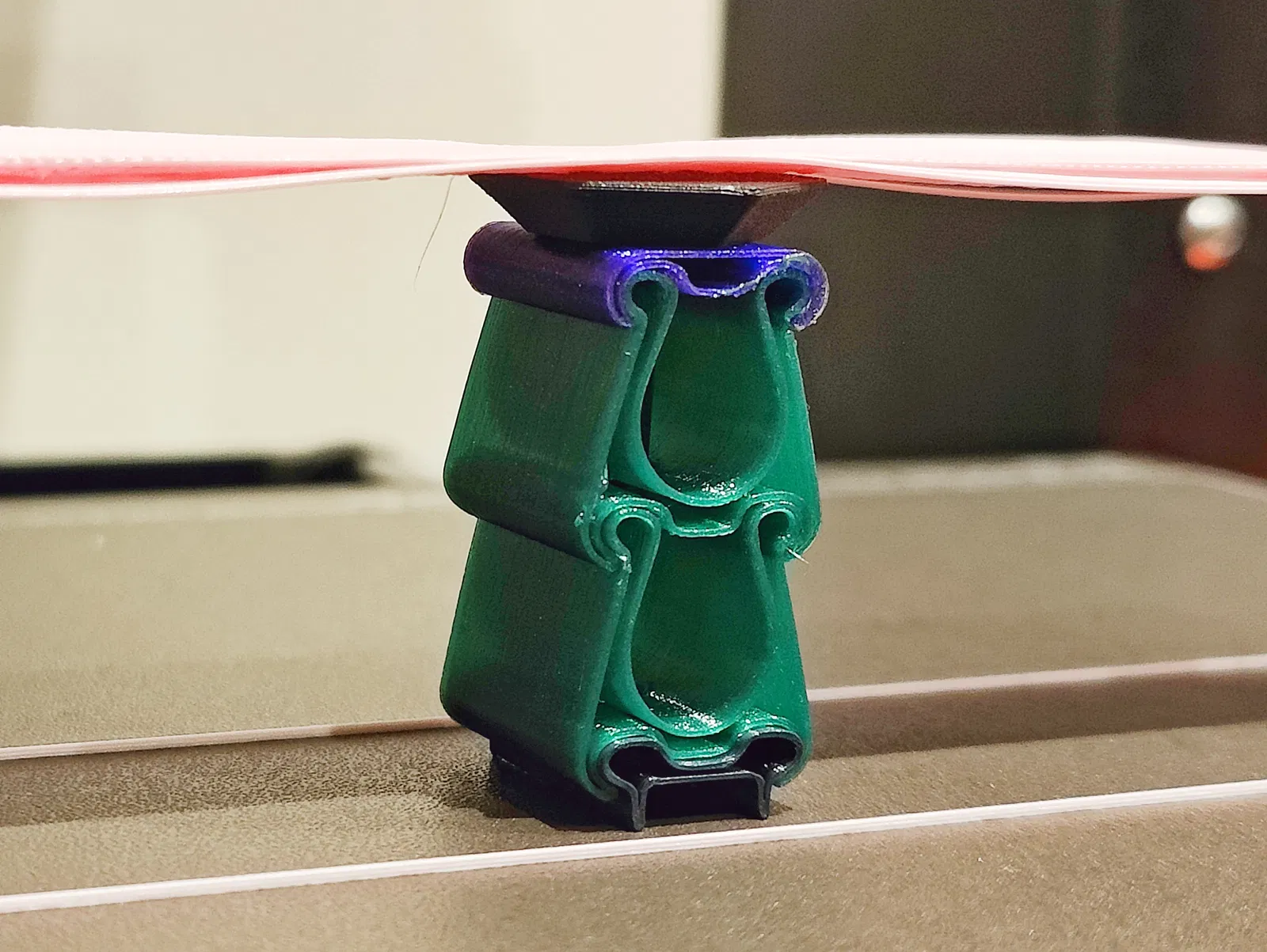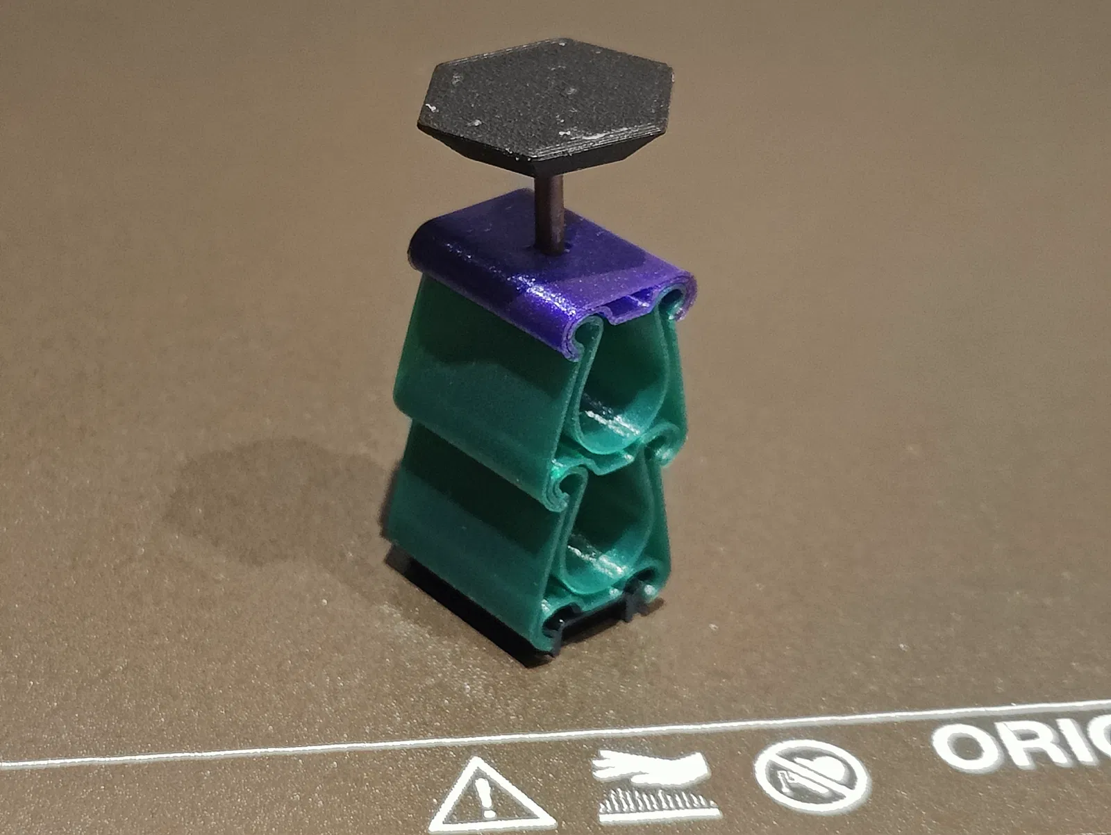 Thanh đỡ có thể được giữ cố định bằng nam châm, tuy nhiên phần màu tím sẽ giữ nó nếu dùng Prusament với máy Prusa i3 MK3S+.