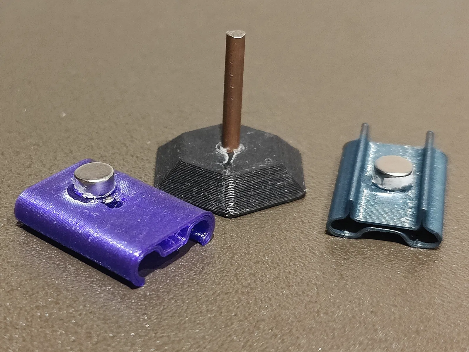 Bộ phận đáy từ tính để gắn kết cấu vào mâm in (màu xanh dương).