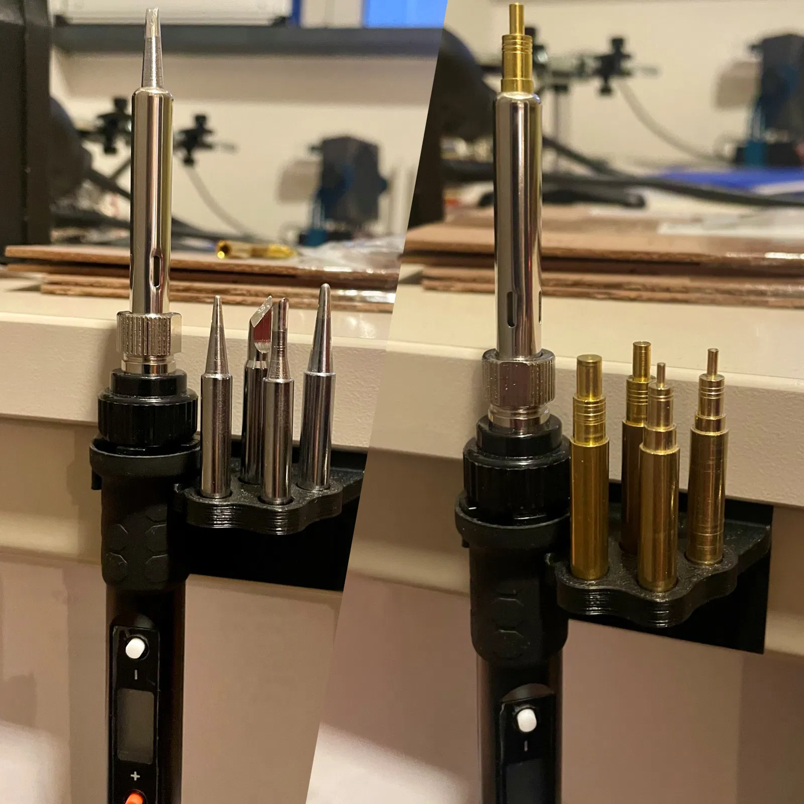 Cái khay nhỏ này giúp giữ mỏ hàn và các đầu mỏ hàn của bạn gọn gàng, không chiếm diện tích bàn làm việc mà vẫn luôn trong tầm tay. Được thiết kế để in bằng ABS chịu nhiệt tốt hoặc có thể in bằng PLA. Có hai phiên bản khe cắm cho đầu mỏ hàn tiêu chuẩn hoặc đầu cắm chèn ốc nhiệt.