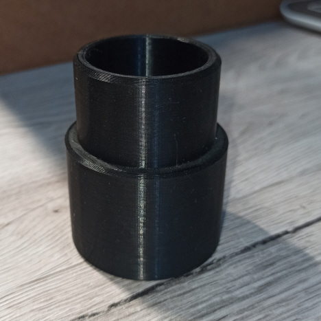 Bộ chuyển đổi ống thông hơi "air vent adapter - Reduzierung Entlüftungshaube" này giúp bạn dễ dàng kết nối các ống thông hơi. Kích thước: Ø1: 57 mm, Ø2: 48 mm, dài 71,5 mm. Có hai lỗ để bắt ốc. In bằng PETG với độ phân giải 0.2 và độ đặc ruột 40% là ổn áp.