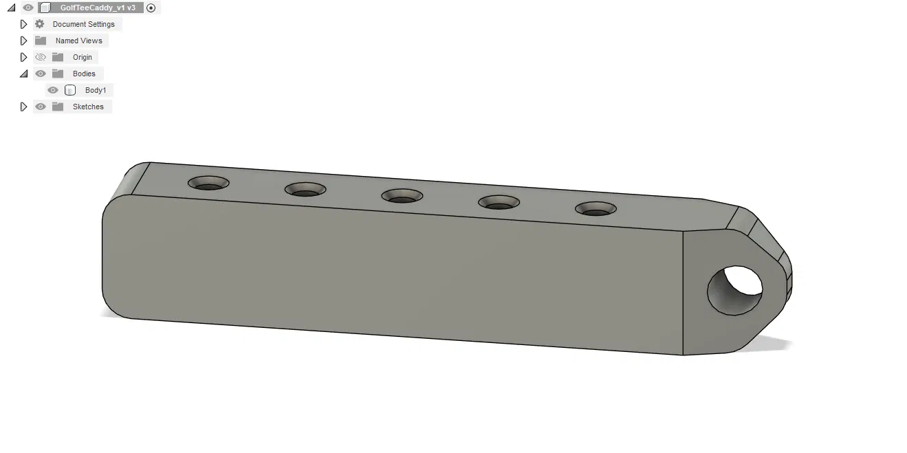 Tui bực mình vì phải lục lọi trong cái túi golf tối thui như hố đen để tìm tee. In bằng TPU cho nó ôm sát nha. Bạn cũng có thể tăng kích thước bản in lên một hai phần trăm tùy theo máy in của bạn hoặc khoan lỗ to hơn một chút. Tui có khoan lỗ to hơn rồi đó, giờ thì tee gắn vô vừa khít luôn.