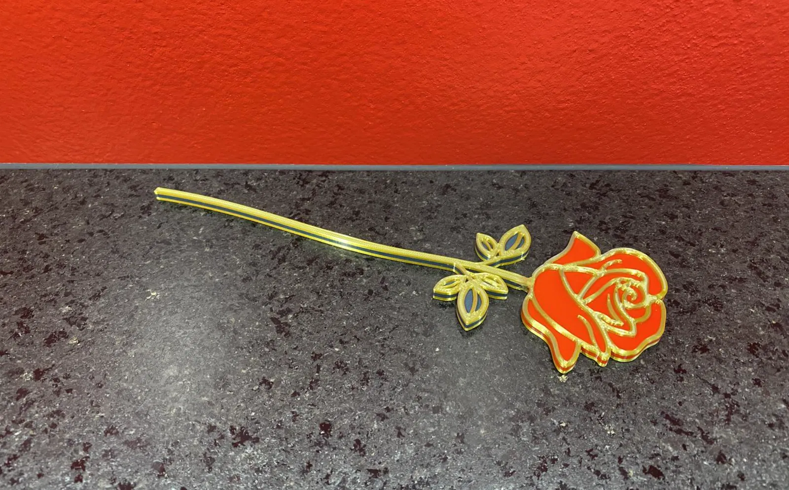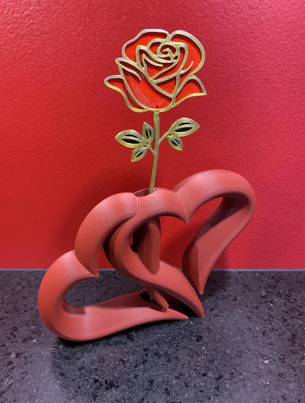In mô hình hoa hồng Ngày Lễ Tình Nhân với hai màu riêng biệt cho hoa và cuống, sau đó ghép lại. Hoàn hảo để trang trí hoặc làm quà tặng, kết hợp tuyệt đẹp với mô hình Trái Tim Đôi.