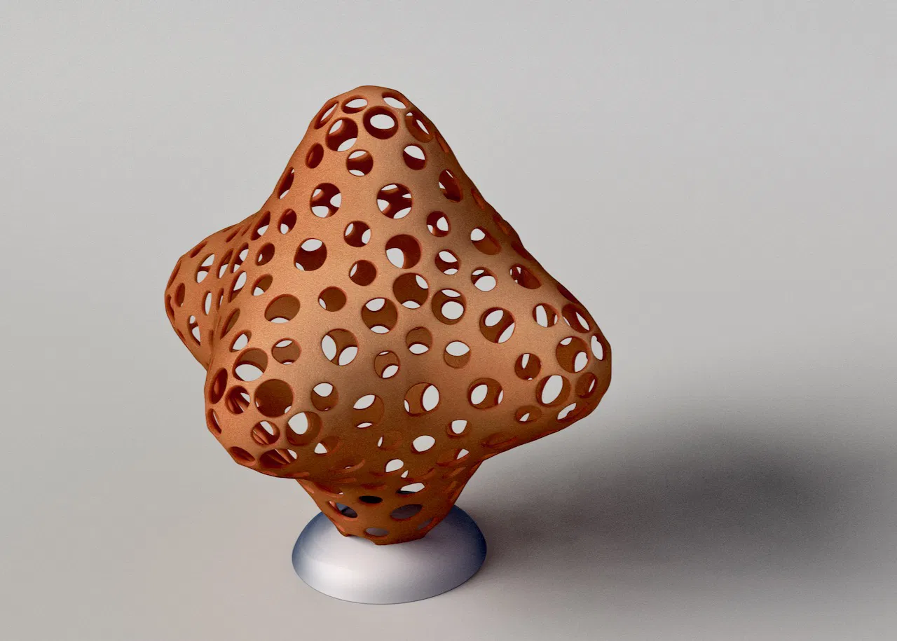 Một tác phẩm điêu khắc nghệ thuật lấy cảm hứng từ san hô cách điệu (không nhằm mục đích trông giống thật). Thuật ngữ "corallites" dùng để chỉ các lỗ trên san hô tự nhiên. Mô hình này có thể dùng làm vật trang trí trên kệ, cúp hoặc giải thưởng.