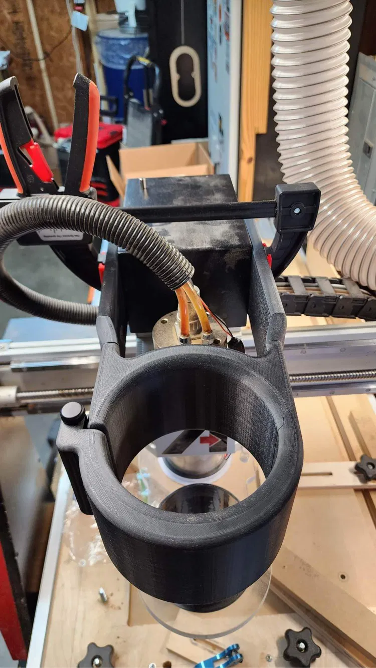 Tao thiết kế cái này cho thằng bạn, ổng hay bị cái dây hút bụi nó đè lên cái mũi router, làm mũi bị xéo xẹo lúc chạy.