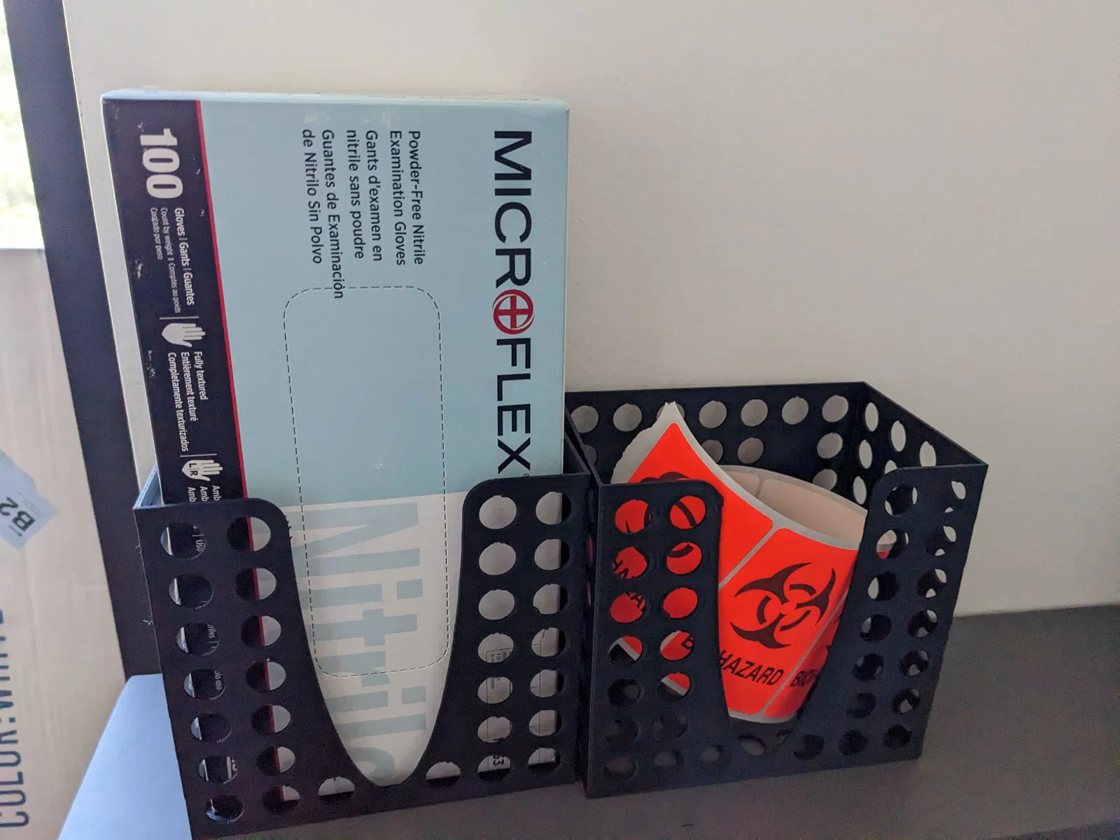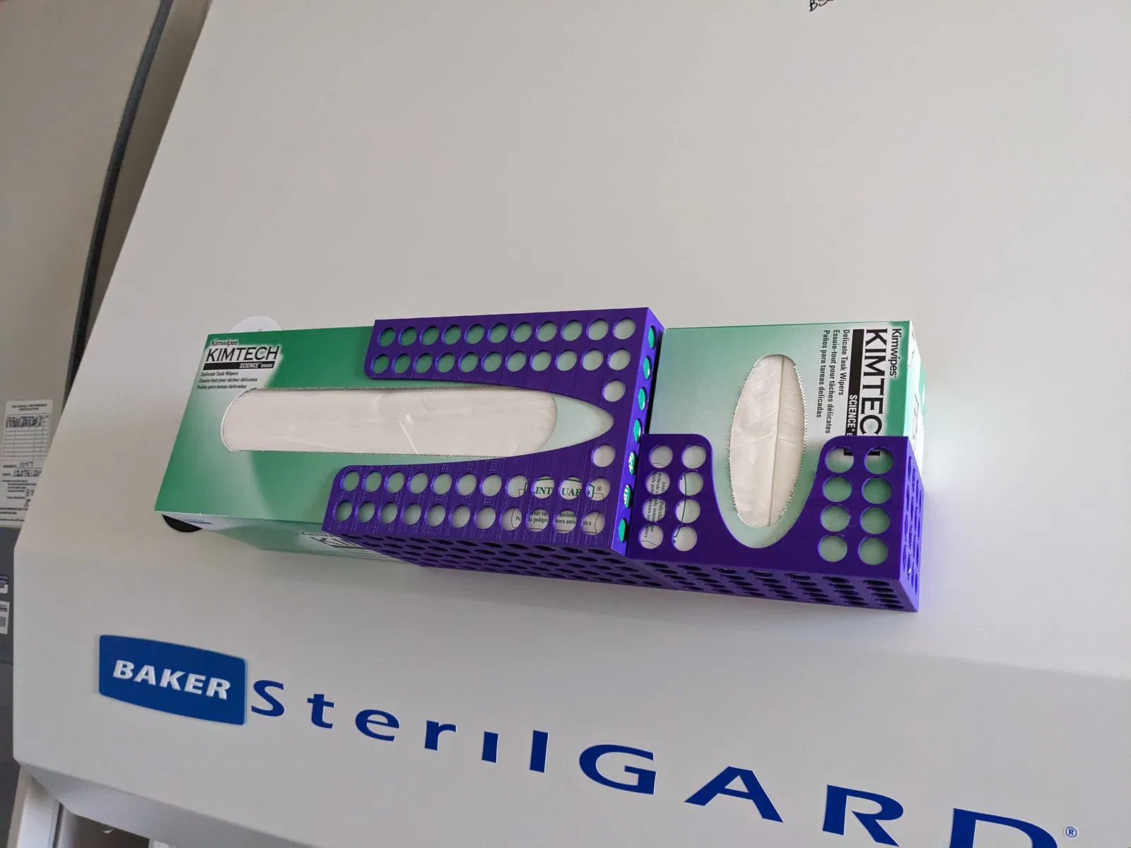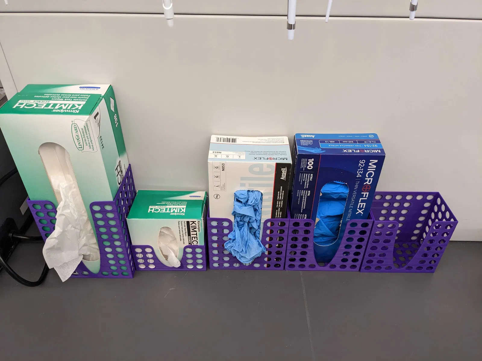 Giá đỡ cho các loại dụng cụ phòng thí nghiệm khác nhau, đặc biệt là kimwipes và găng tay.