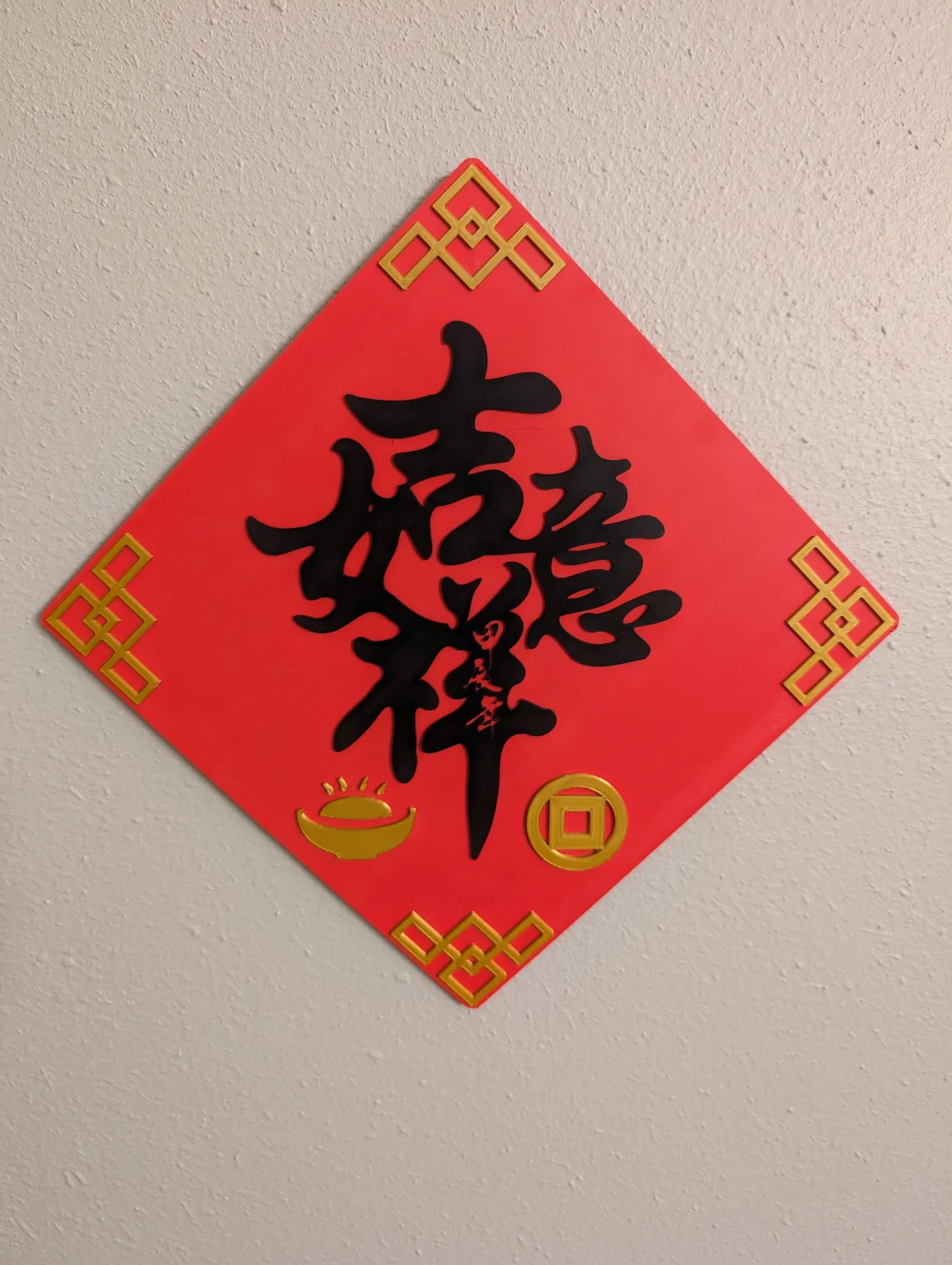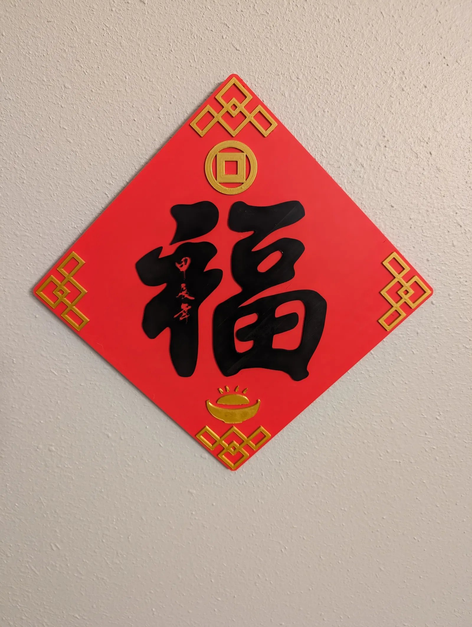 Bốn mẫu treo tường Tết độc đáo với các biểu tượng may mắn như Phúc, Chiêu tài tấn bảo. Có nhiều phối màu, tùy chỉnh dễ dàng. Phiên bản có ủi (ironing) và không ủi. Hãy chia sẻ trải nghiệm in của bạn nhé!