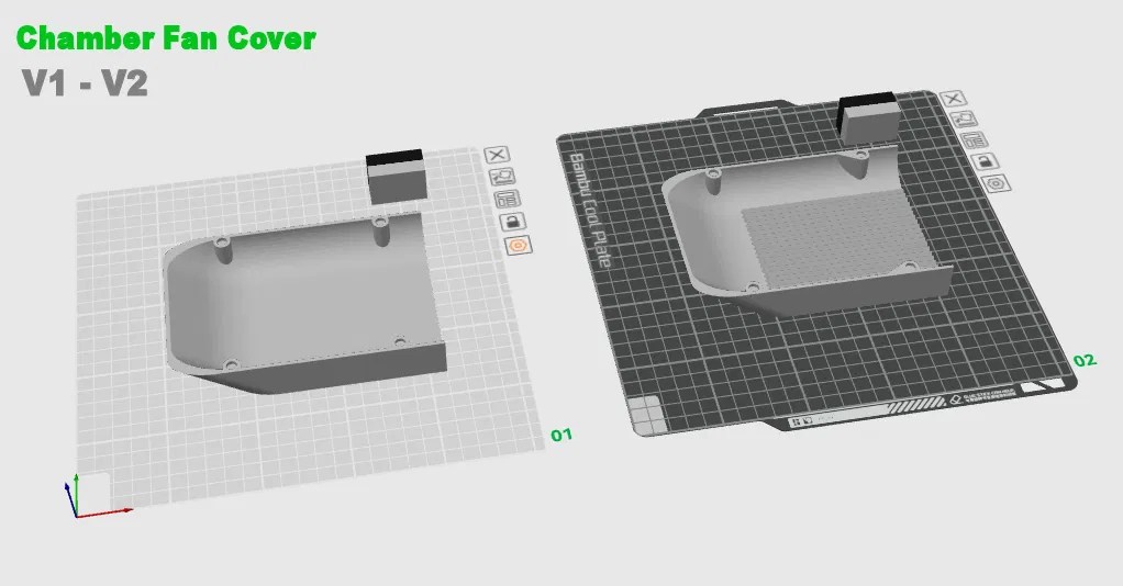 Tôi xin chia sẻ mô hình chụp quạt buồng máy do chính tôi thiết kế. Tôi đã thử nghiệm các mẫu khác nhưng nhận thấy chúng làm giảm đáng kể luồng không khí. Theo tôi, điều này có thể khiến quạt nhanh hỏng hơn và hơi ẩm quay trở lại bên trong máy in, nơi có các bộ phận điện tử. Chụp quạt kín không làm giảm tiếng ồn đáng kể. Đó là lý do tại sao tôi quyết định thiết kế mẫu chụp riêng. Tôi đã làm 3 phiên bản và sau khi thử nghiệm, tôi đã chọn ra phiên bản tốt nhất và chia sẻ với cộng đồng Bambu :-)