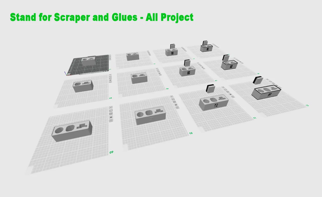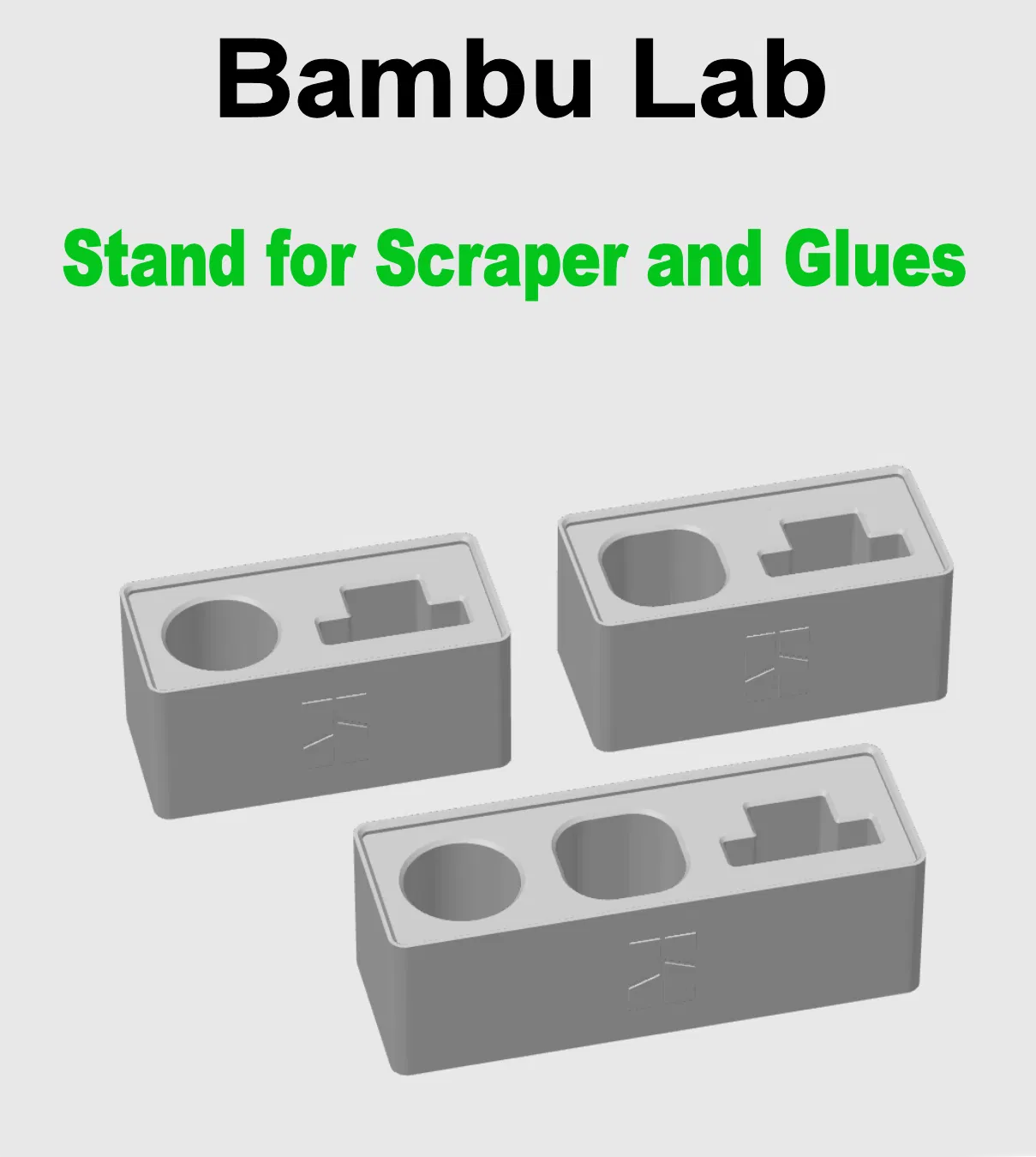 Chia sẻ đế đựng dao cạo và keo Bambu Lab (thỏi & lỏng) với 3 phiên bản: không logo, logo nổi, logo tô màu. Đế có chỗ gắn silicon chống trượt. Kích thước đa dạng cho từng loại keo. Lưu ý in logo màu tốn thời gian.