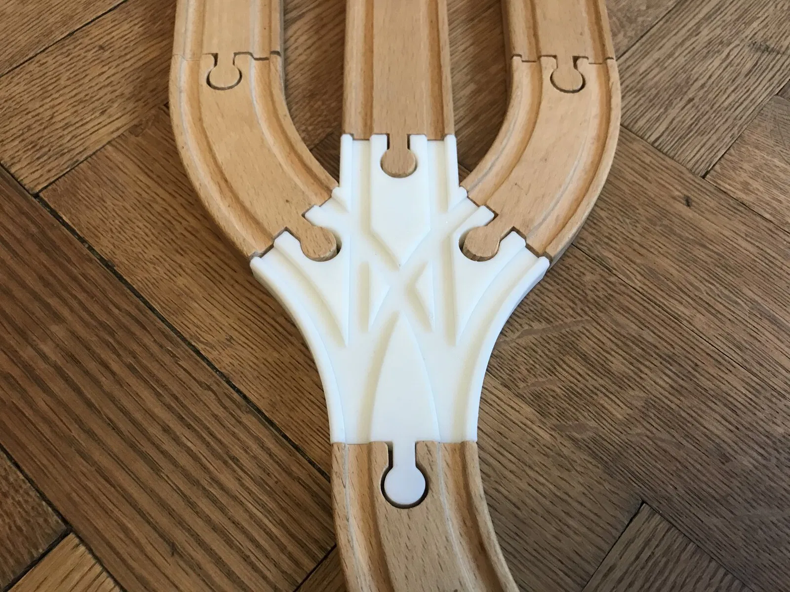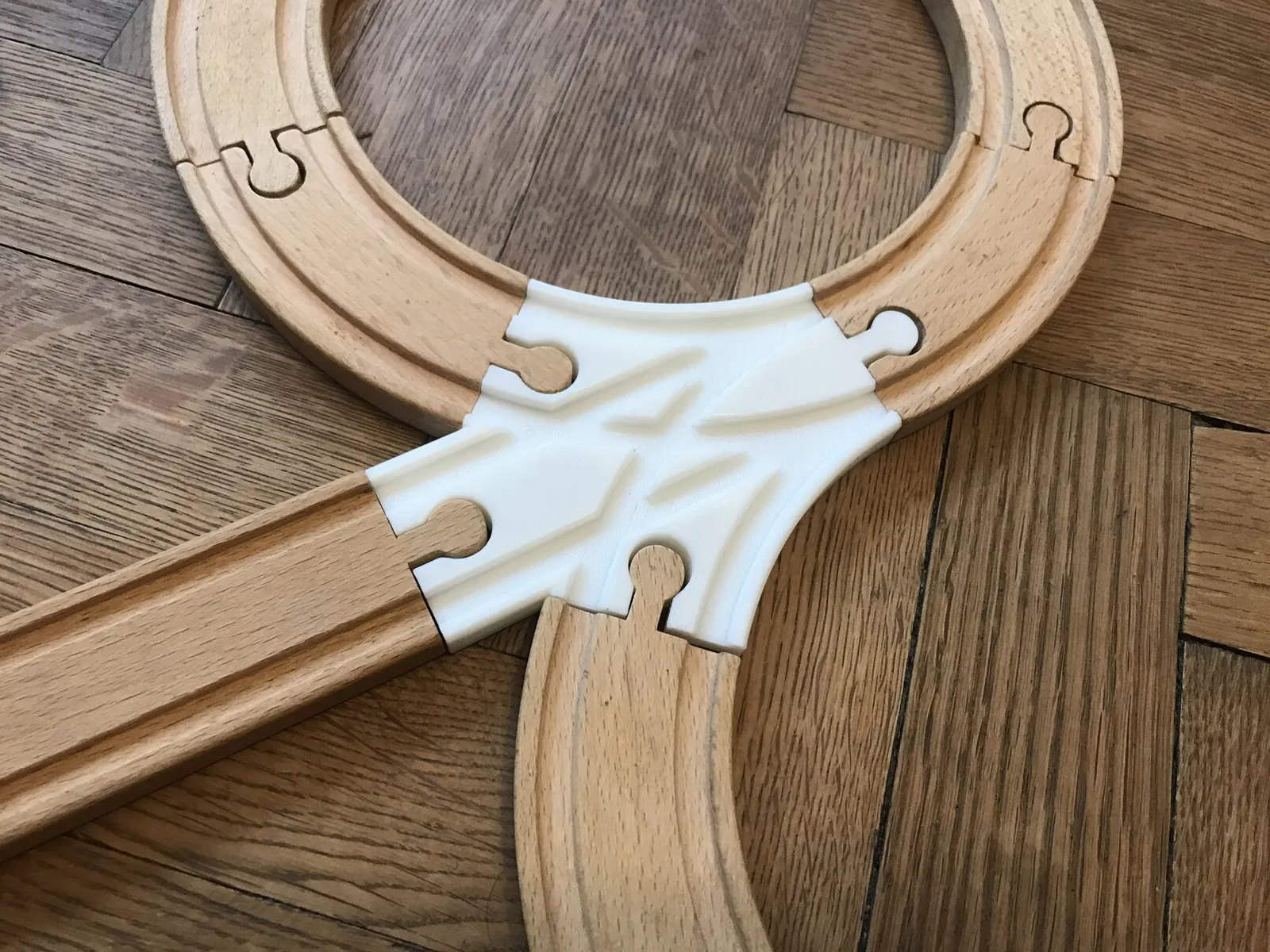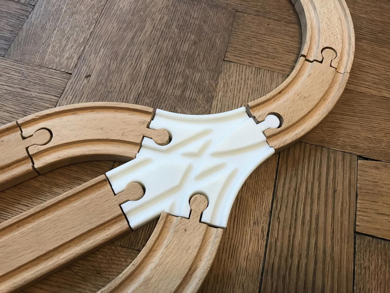 Bản nhạc công tắc đôi nhỏ 45 ° tương thích với Brio, Ikea Lillabo (xương chó nhựa cũ và phiên bản chỉ bằng gỗ hiện tại), Thomas Train, Kaufland, Lidl Playtive, Kmart, eBay, ... đường ray bằng gỗ.