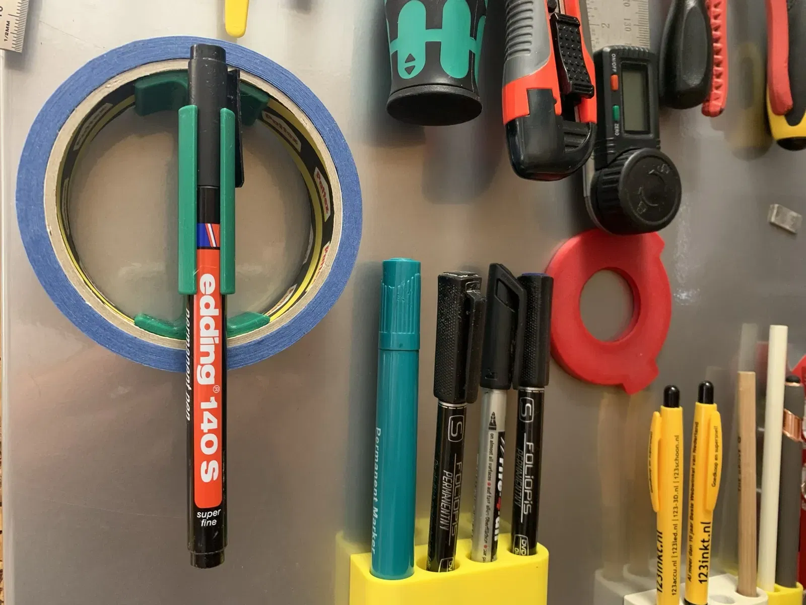 - thêm hai nam châm neodym hình trụ 6x6 mm để giữ giá đỡ băng dính trên các bề mặt kim loại như tủ lạnh