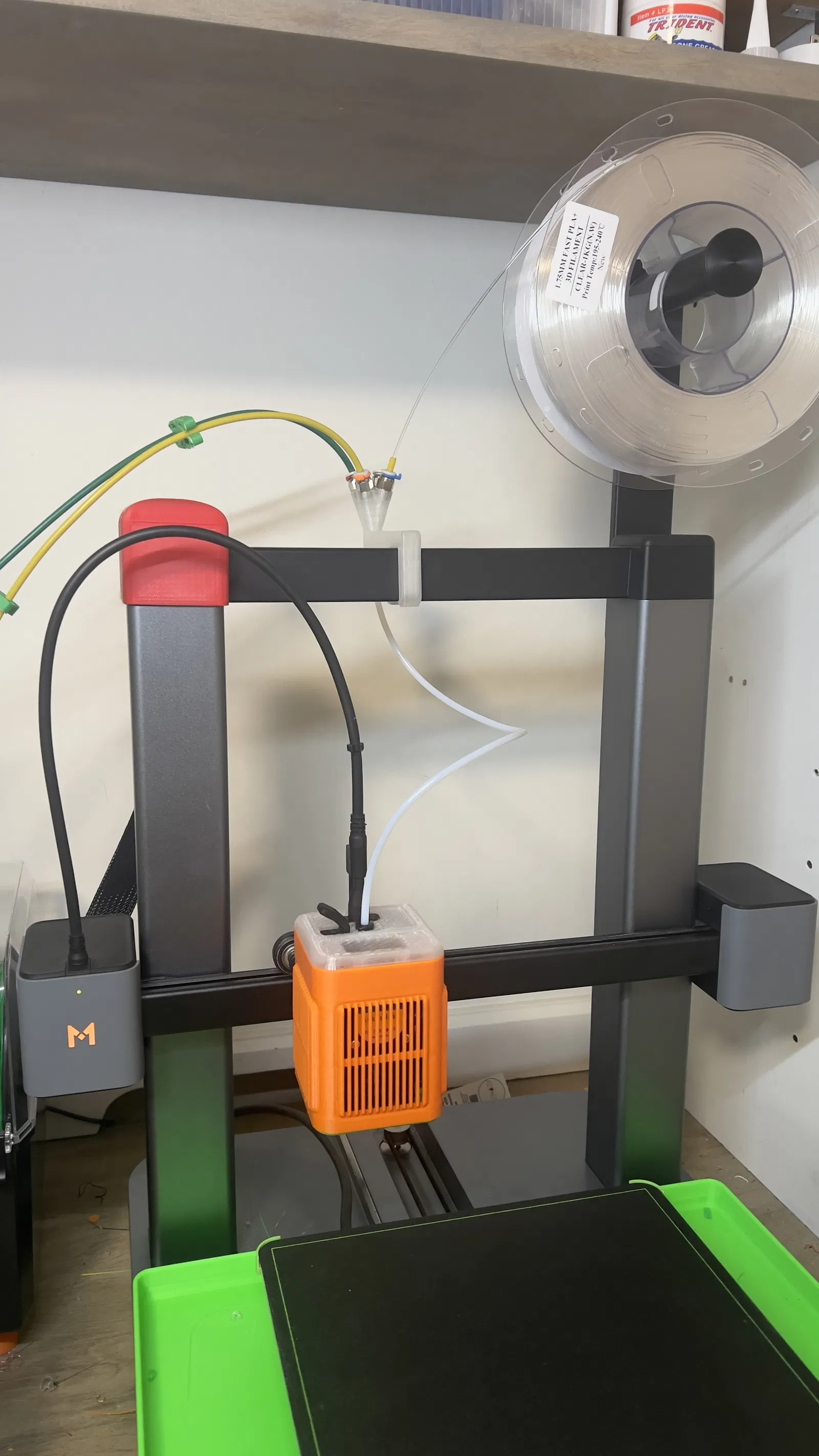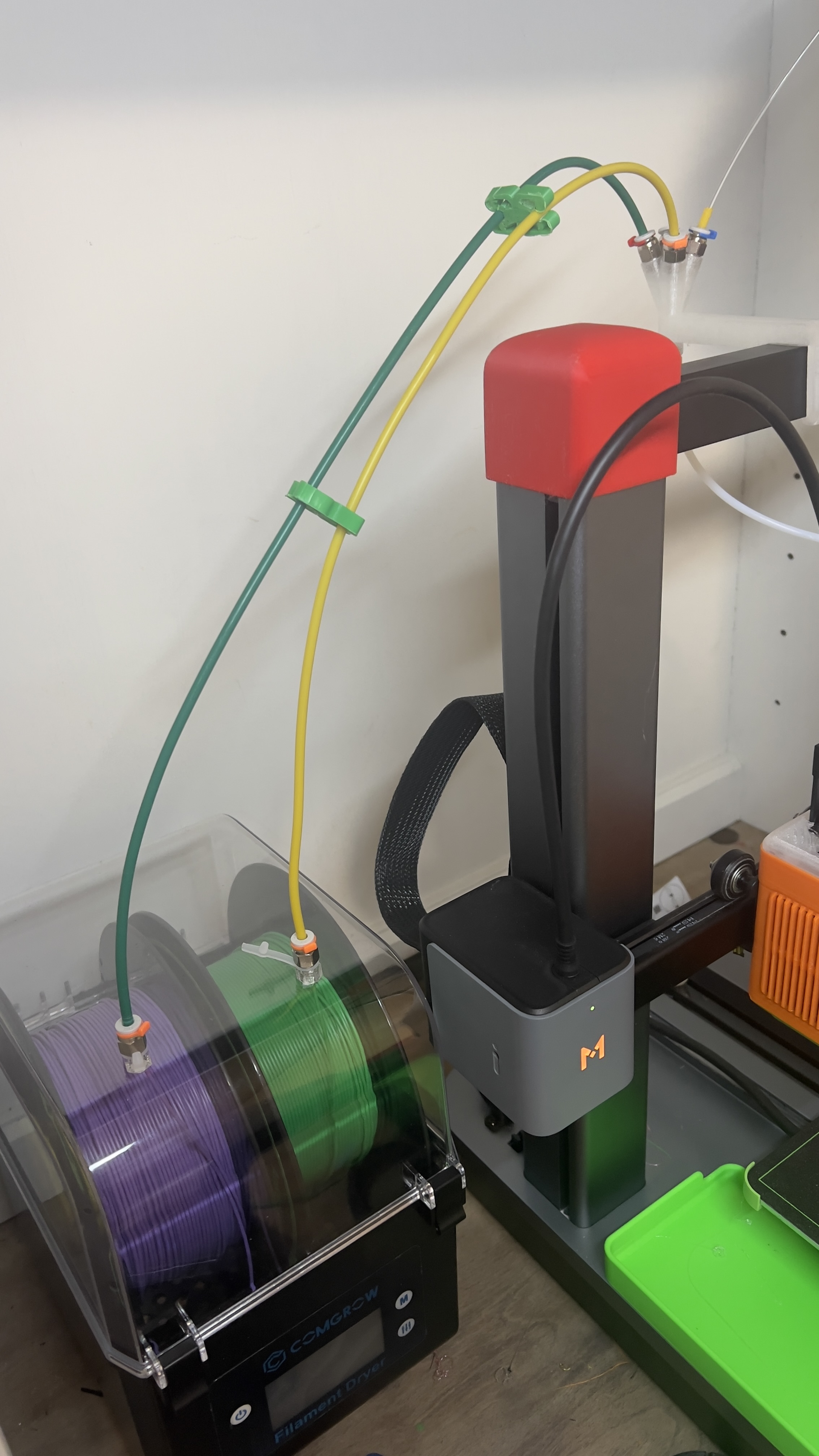 Mình làm lại với thêm bộ nối/chia ống Bowden/PTFE. Bản in này dùng 100% infill với nhựa PLA+ trong suốt của EPAX trên máy Ankermake m5c, có sử dụng supports và in nghiêng 45 độ.
