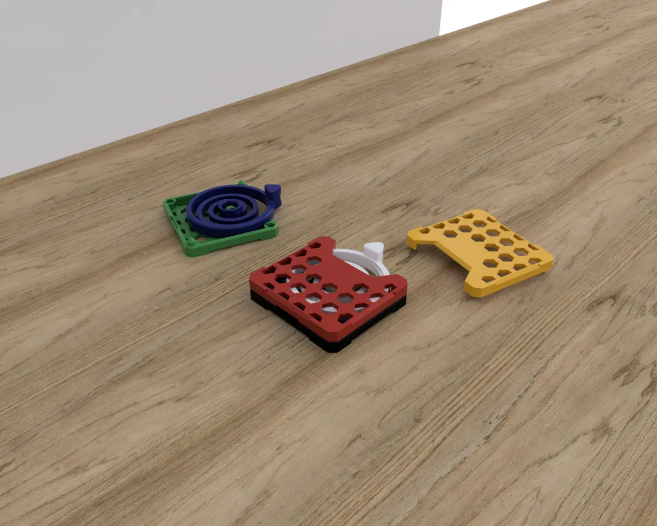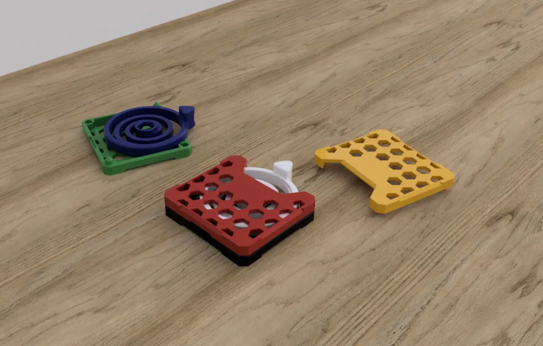 Đặt bánh xe vào vỏ như trong hình. Đảm bảo bánh xe và đế khớp với nhau trước khi gắn mặt còn lại của vỏ. Nó cũng có một khe ở dưới đáy để dễ dàng tháo rời.