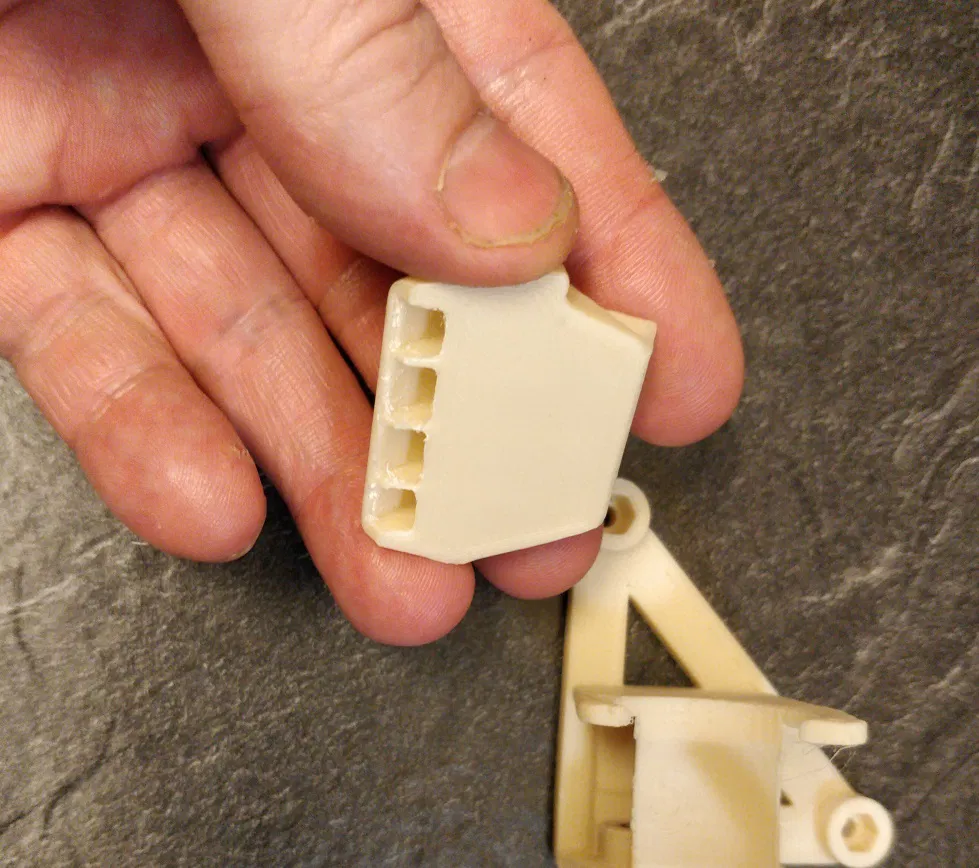 Tui có in cái này bằng GreenTec Pro, cái này chịu nhiệt được tới 160C lận đó. Còn chụp quạt bằng PETG với ABS thì ok hết, còn cái khung thì chắc PLA cũng xài được luôn.