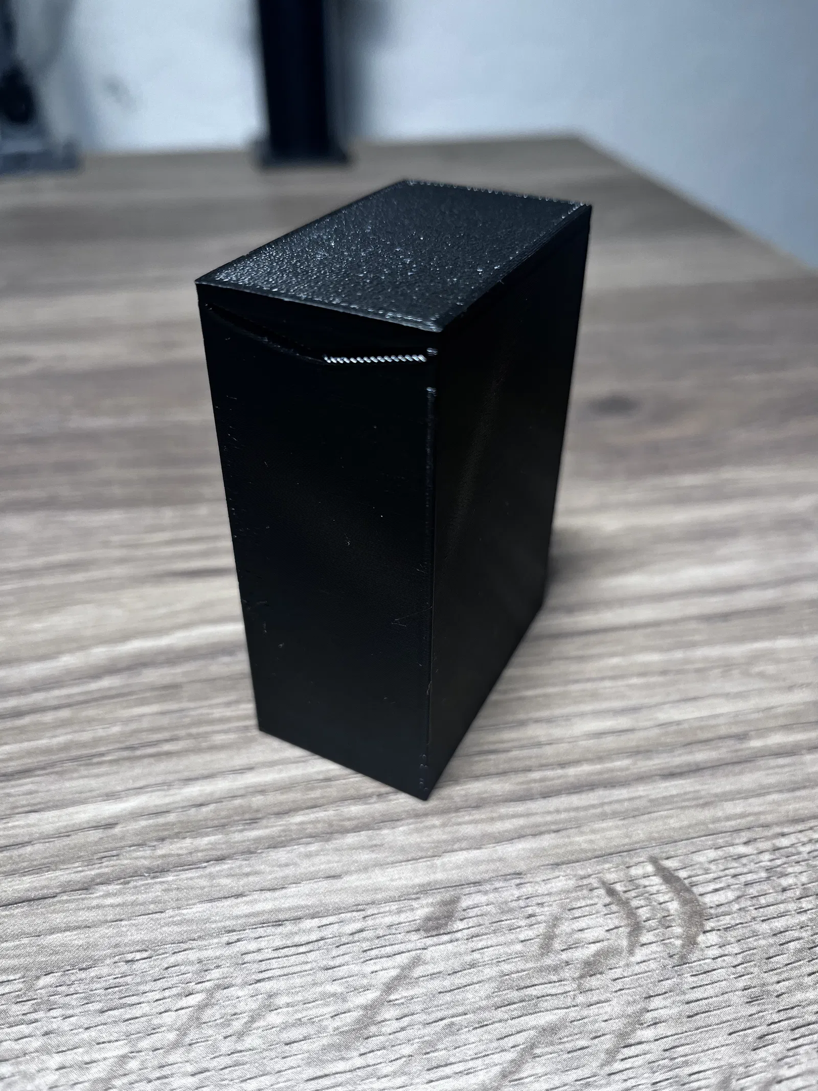 Hộp đựng dao cạo râu này được thiết kế để in ngược mà không cần support. Khe cắm dao cạo được thiết kế vát góc để giảm thiểu khả năng lưỡi dao bị bật ra, có hai phiên bản với khe hình parabol (dễ dùng) và hình tam giác (thẩm mỹ).