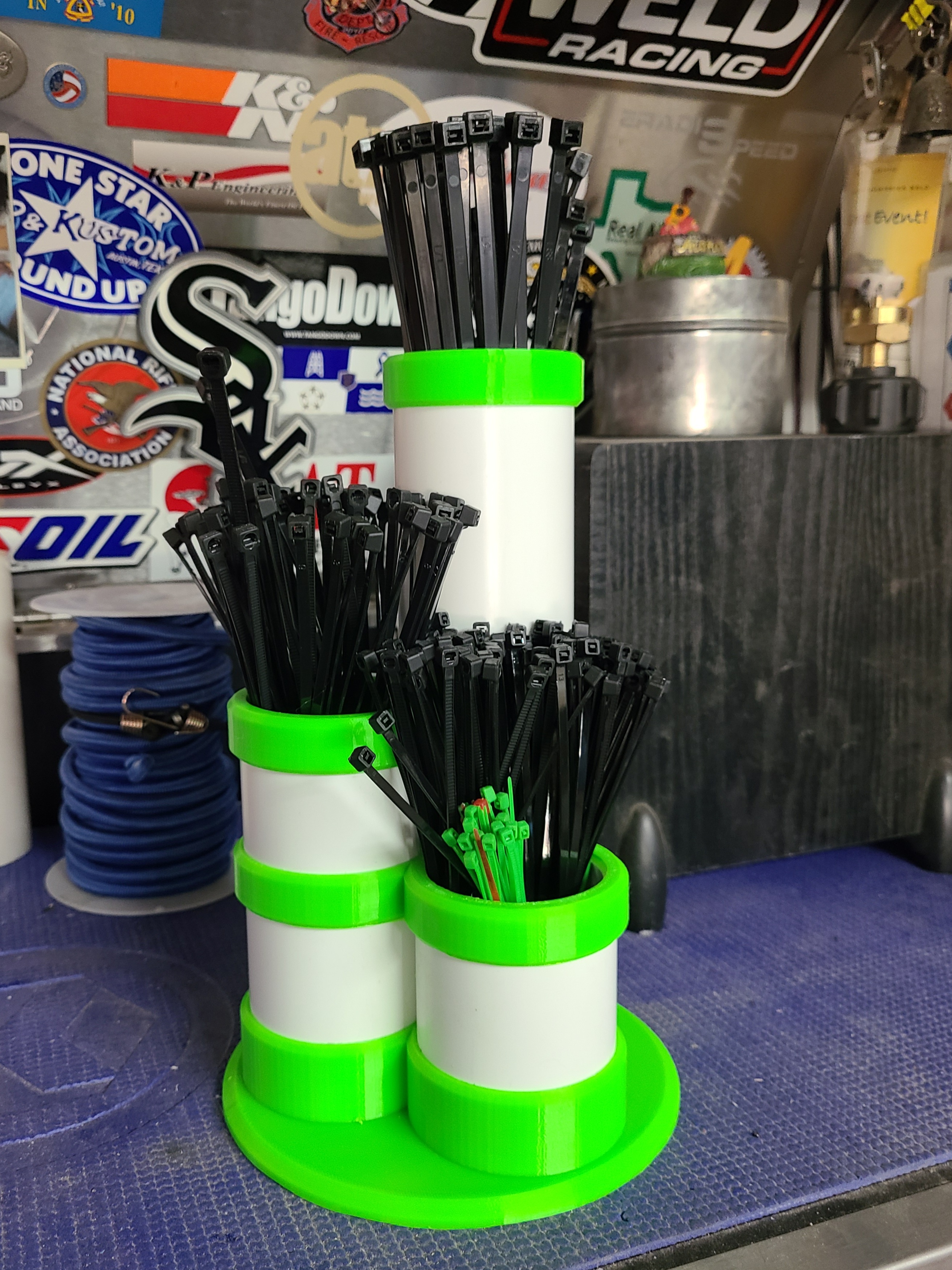 Giá đỡ dây rút nhựa (ty-wrap) sử dụng 3 đoạn ống nhựa PVC 2 inch. Mẫu này giúp bạn giữ gọn gàng các loại dây rút nhựa, dây thít cáp, dây buộc...
