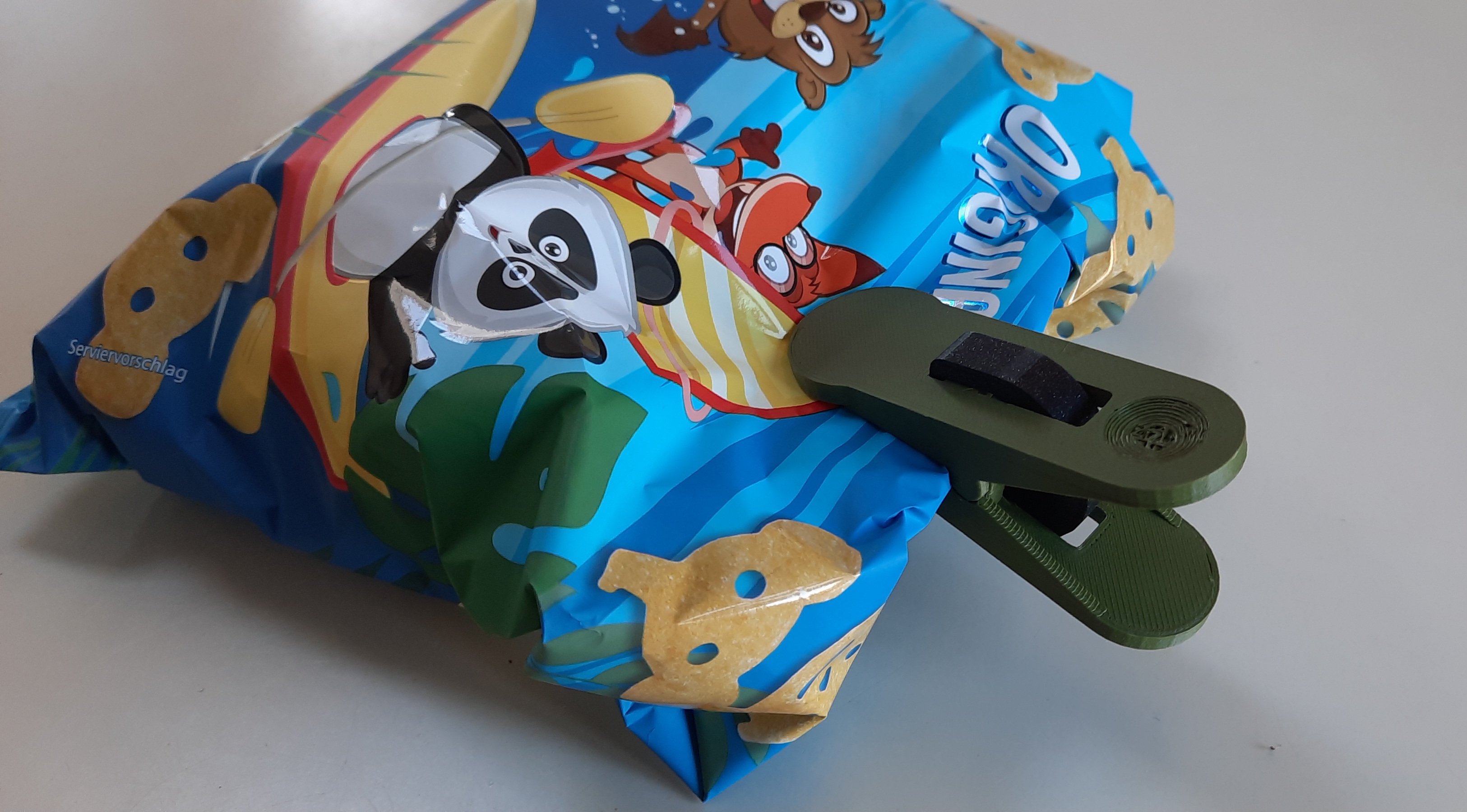 Mẫu kẹp túi chíp đơn giản này có thể được in 2 bộ phận kẹp và 1 lò xo để tạo thành một chiếc kẹp hoàn chỉnh. Bạn có thể dùng tua vít để lắp lò xo vào.