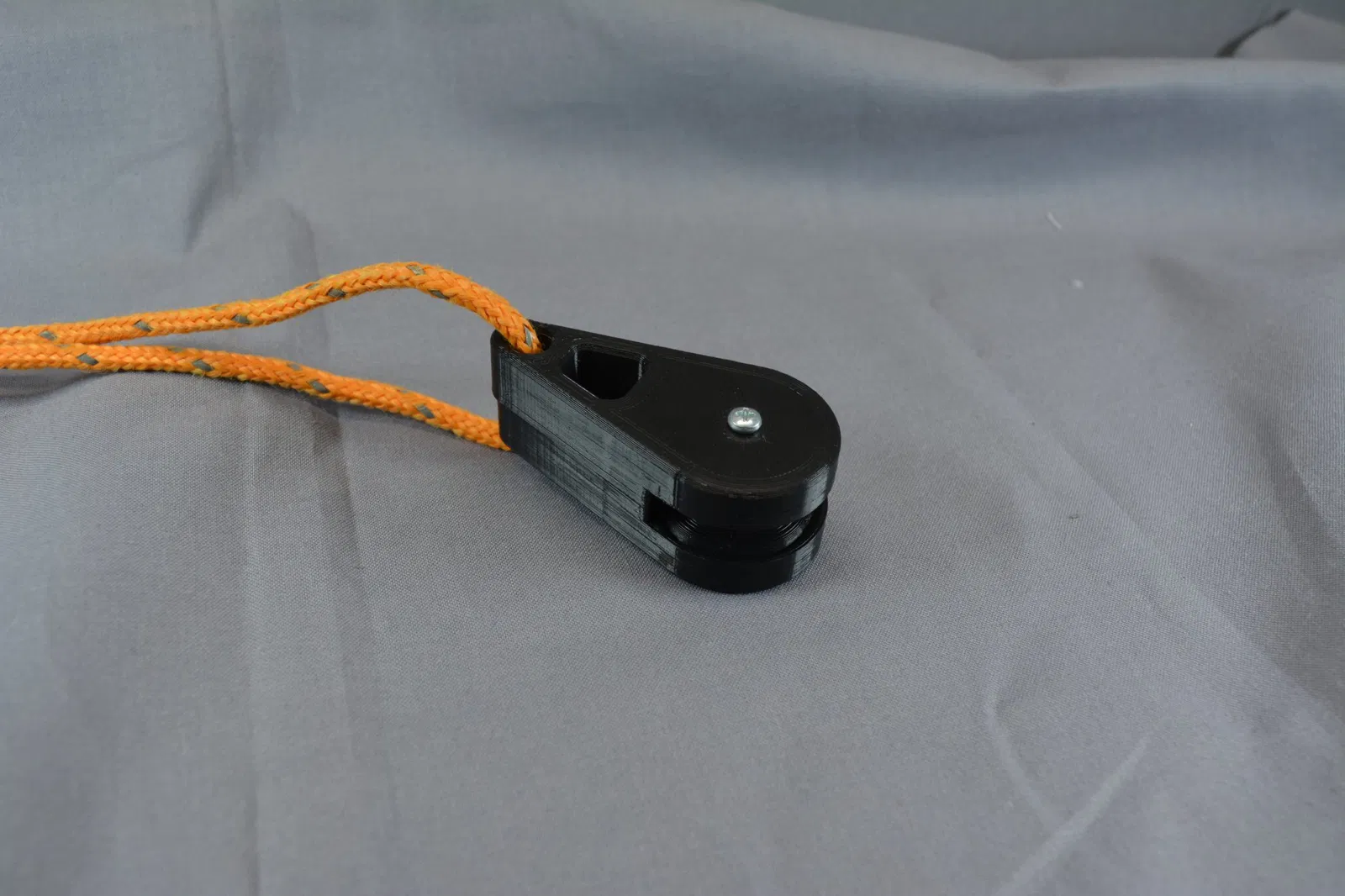 Thiết kế với số lượng bộ phận in ấn tối thiểu (3): 2ea Vỏ Puli và 1ea Con Lăn Puli. Thiết kế độc đáo này ngăn cản dây thừng trượt lên và qua puli và kẹt giữa bên trong trục puli và ổ bi. Được khuyến nghị in phẳng để các đường lớp dài và chắc chắn.