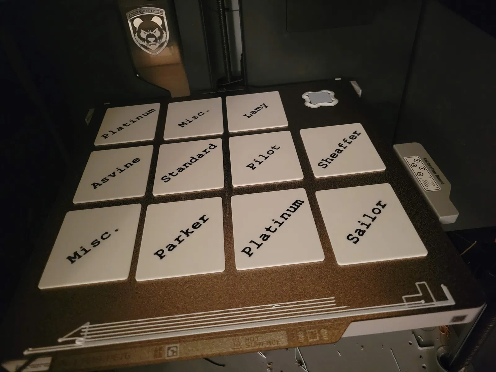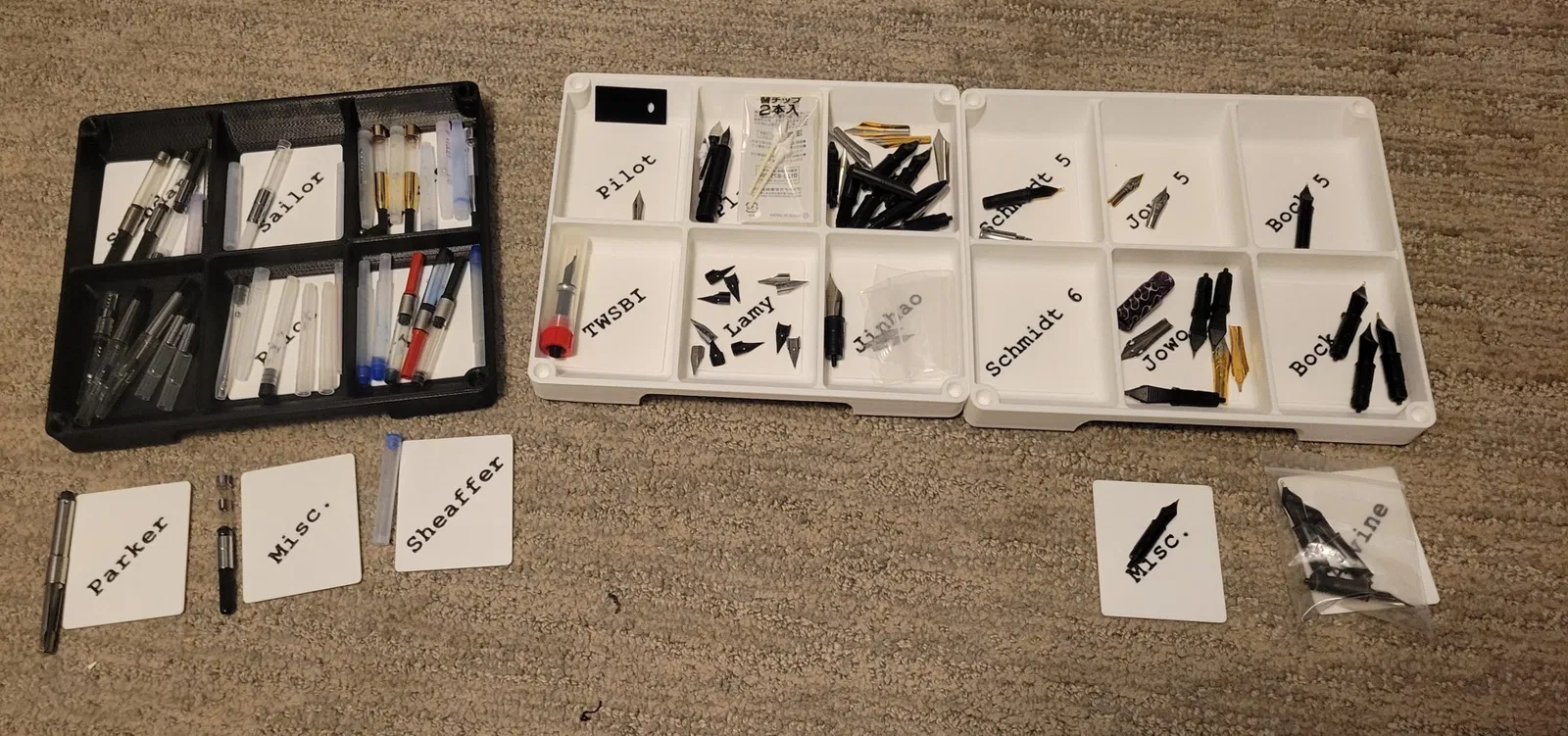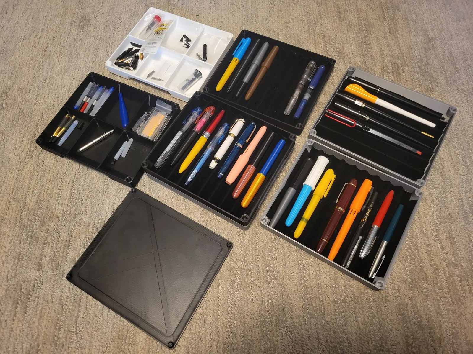 Các hộp xếp chồng được thiết kế để lưu trữ và hiển thị nhiều bút, bộ chuyển đổi và ngòi.