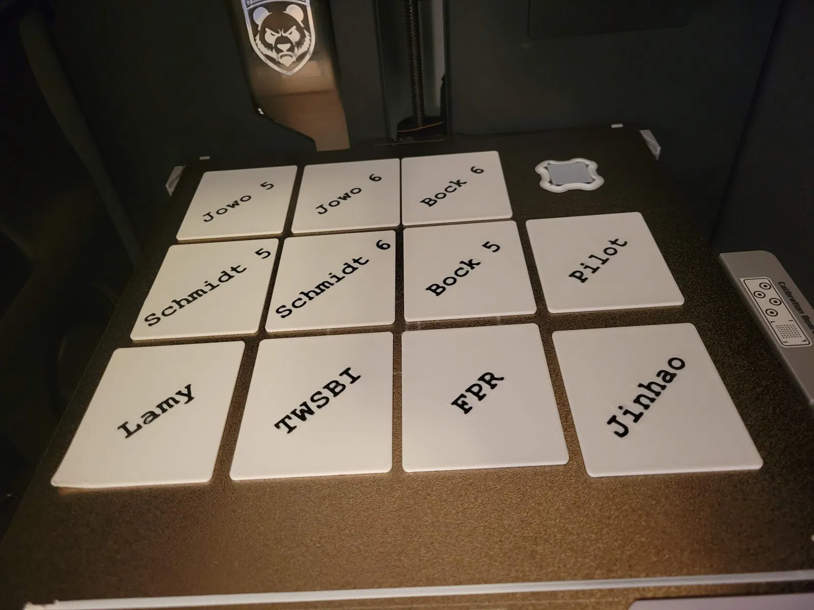 In tốt với vòi phun 0.4mm ở độ cao lớp 0.25mm. Vòi phun 0.6mm có lẽ cũng hoạt động tốt. Cung cấp 2-3 lớp tường và 4-6 lớp trên/dưới. Đổ đầy tối thiểu 15%.