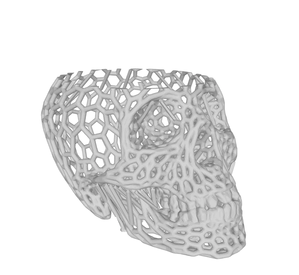 Mẫu phối lại từ đầu lâu Voronoi gốc, biến nó thành một giá đựng bút vừa tiện lợi vừa trang trí. Tuyệt vời cho việc trang trí nhà cửa hay các bữa tiệc Halloween. Có thể đặt trên bàn hoặc treo tường (cần thêm cốc cắm).