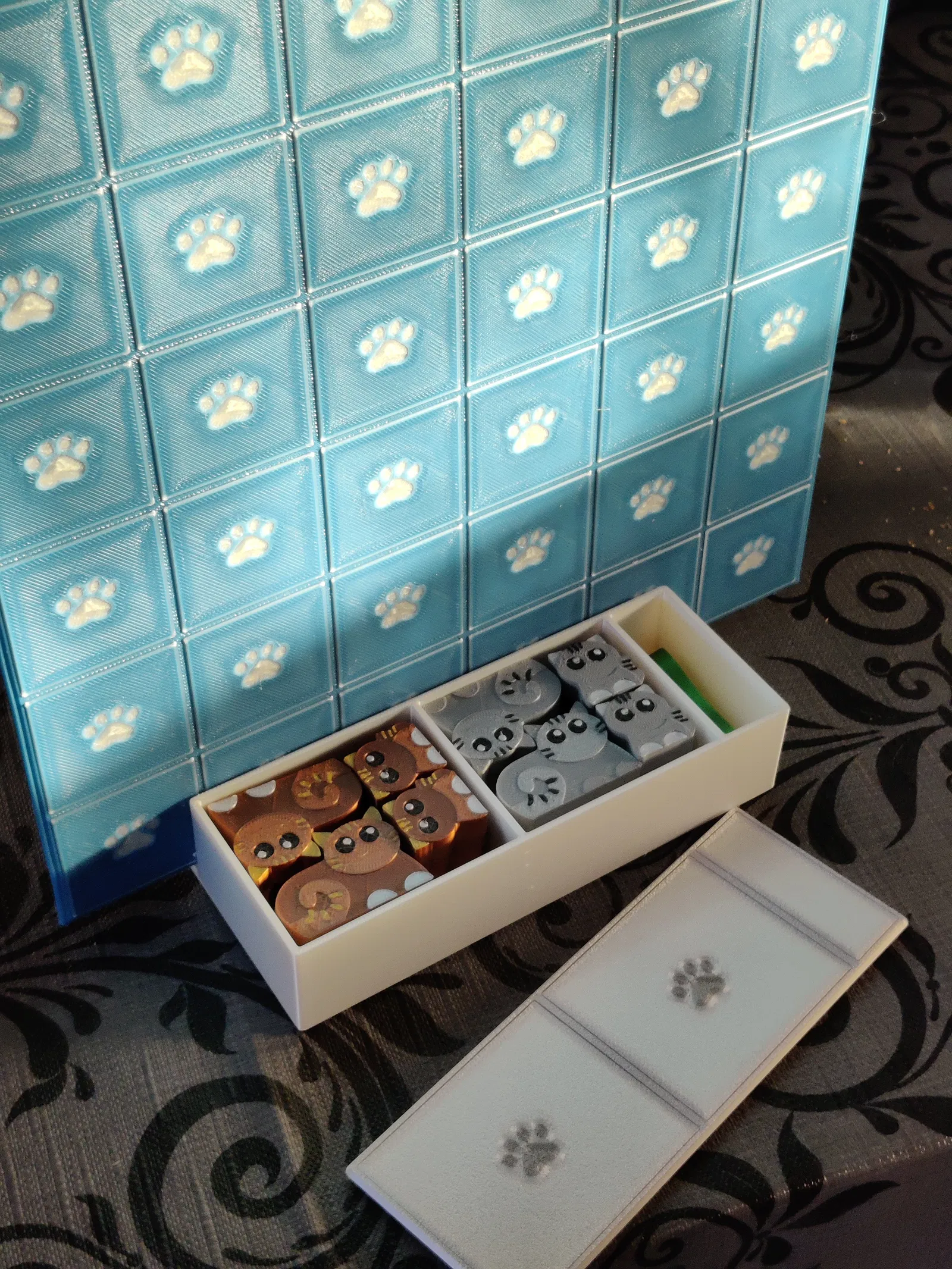 Tôi cũng thiết kế một cái hộp để bạn cất giữ các quân cờ, có thể dựng bàn cờ đứng nên bạn có thể đặt cả bộ game lên kệ và nó sẽ gọn gàng.