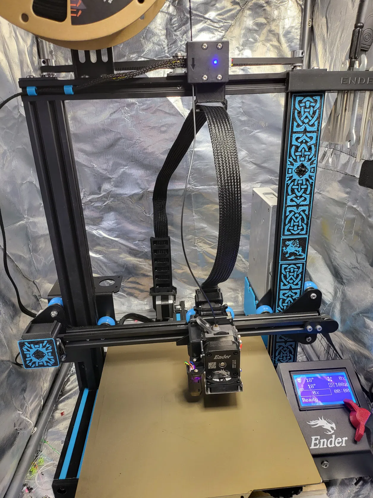 Sau khi nâng cấp máy Ender 3 Pro của mình lên bộ combo Sprite Pro hotend/extruder, tôi muốn tìm cách tốt hơn để đỡ dây cáp và giữ nó gọn gàng. Tất cả các giải pháp tôi tìm thấy đều gắn dây ribbon vào vị trí extruder ban đầu, điều này tạo ra rất nhiều áp lực xoắn lên dây cáp ngay phía trên đầu nối, và đối với tôi, đó không phải là giải pháp lâu dài khả thi. Tôi cũng cần một chỗ để di chuyển Cảm biến Hết sợi (Filament Runout Sensor). Vì vậy, tôi đã thiết kế cái này, và sau vài lần chỉnh sửa, nó đã đạt đến mức tôi hài lòng để chia sẻ.