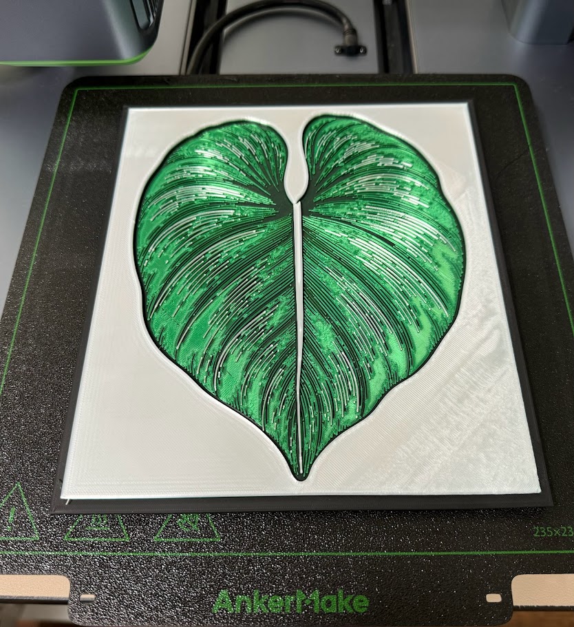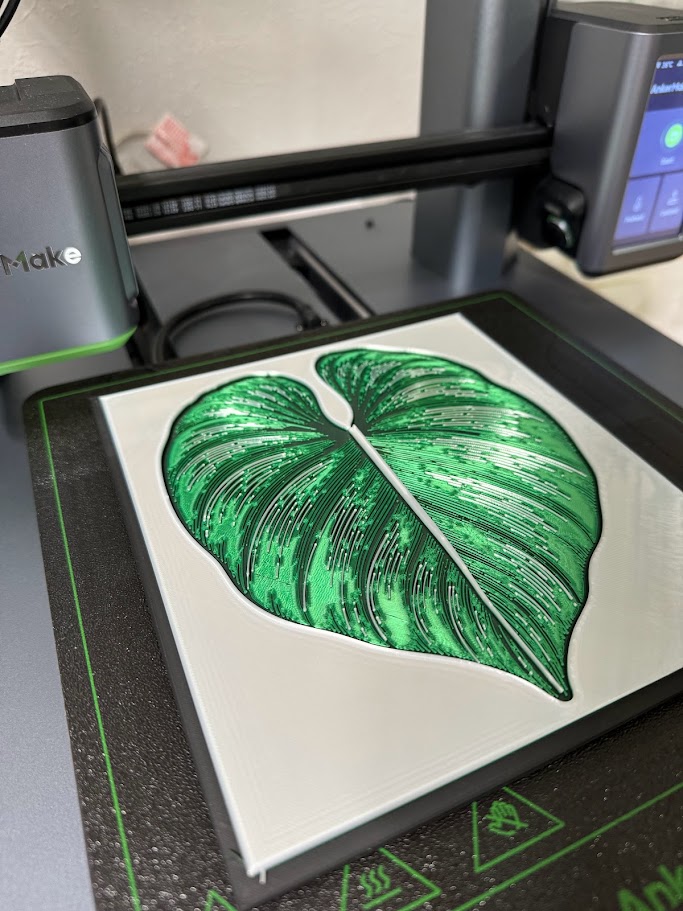 Mô hình tranh 3D dùng 4 màu in khác nhau. Có lỗ phía sau để gắn nam châm 10mm x 3mm treo sau tủ Rudsta. Anh em cứ in theo ý thích nha, tui chia sẻ cách tui đã in với đầu phun .40, lớp cao .18 và 60% infill.