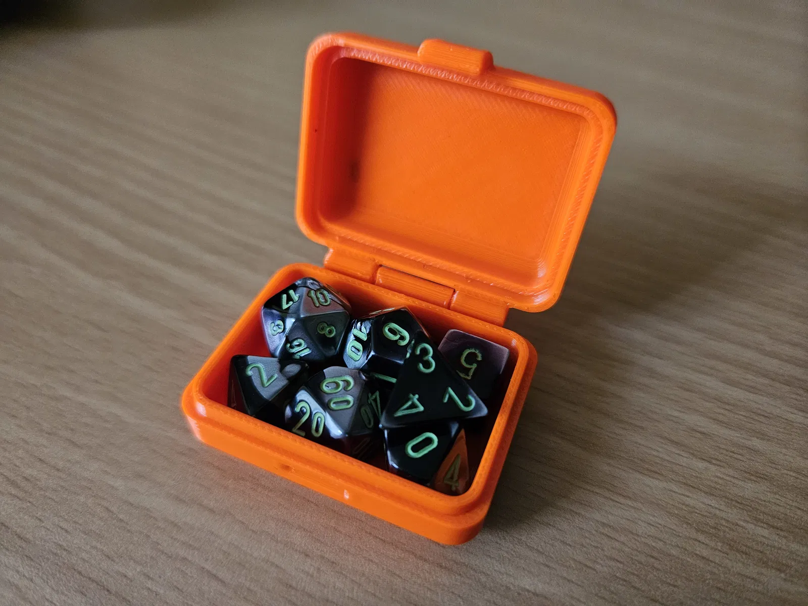 Tui đã chỉnh sửa hộp đựng bàn chải đánh răng của "LW design" để tạo ra một chiếc hộp đựng bộ xúc xắc mini. Chiếc hộp này đựng vừa vặn một bộ gồm bảy viên xúc xắc mini, hoàn hảo cho dân chơi game nhập vai đó nha!