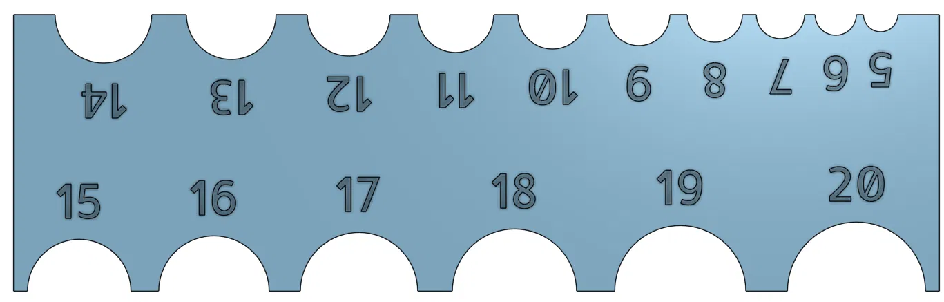 Bộ thước đo góc lượn fillet này gồm hai loại, loại nhỏ đo từ 5mm-20mm và loại lớn đo từ 5mm-30mm. Khuyến khích in úp mặt số xuống để có chất lượng tốt nhất.