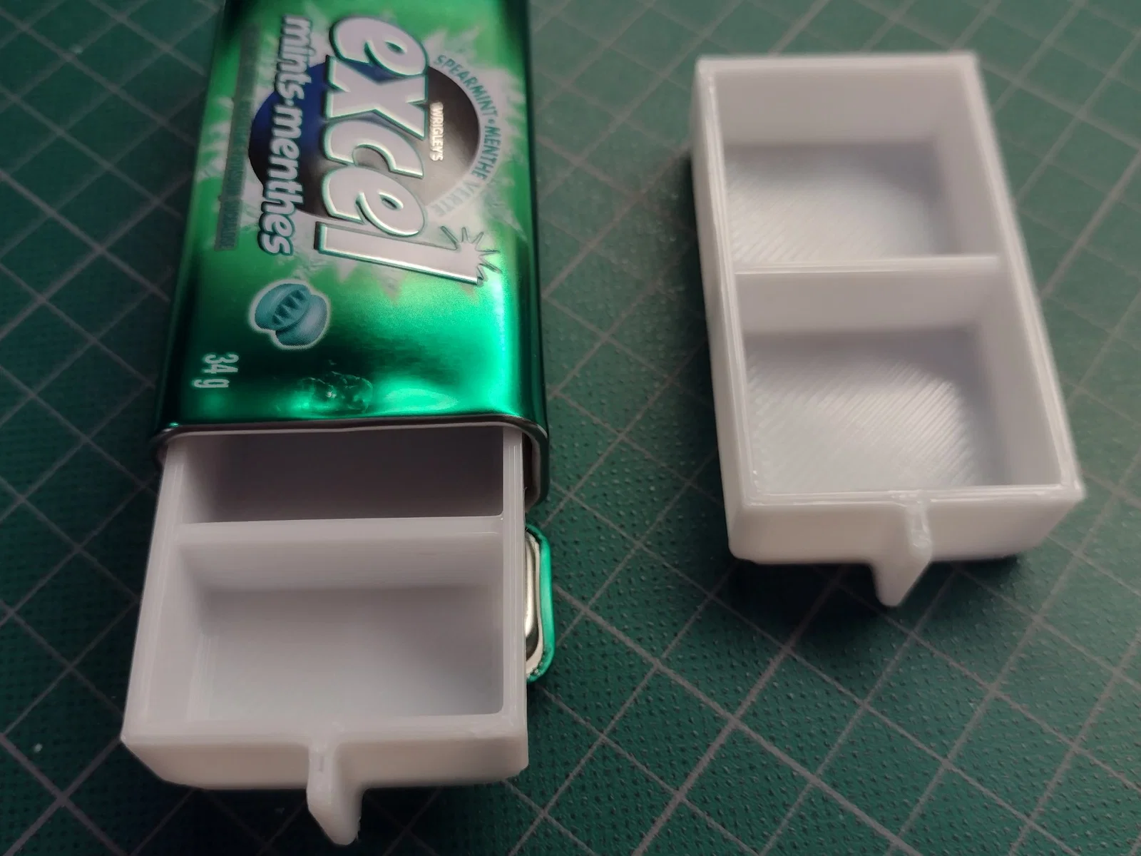 Chúng tôi có một vài hộp bạc hà bằng kim loại chắc chắn này, vì vậy tôi quyết định tái chế chúng. Có hai khay: khay hai ngăn và khay ba ngăn. Bạn có thể tổ chức các vật nhỏ và mang theo dễ dàng.