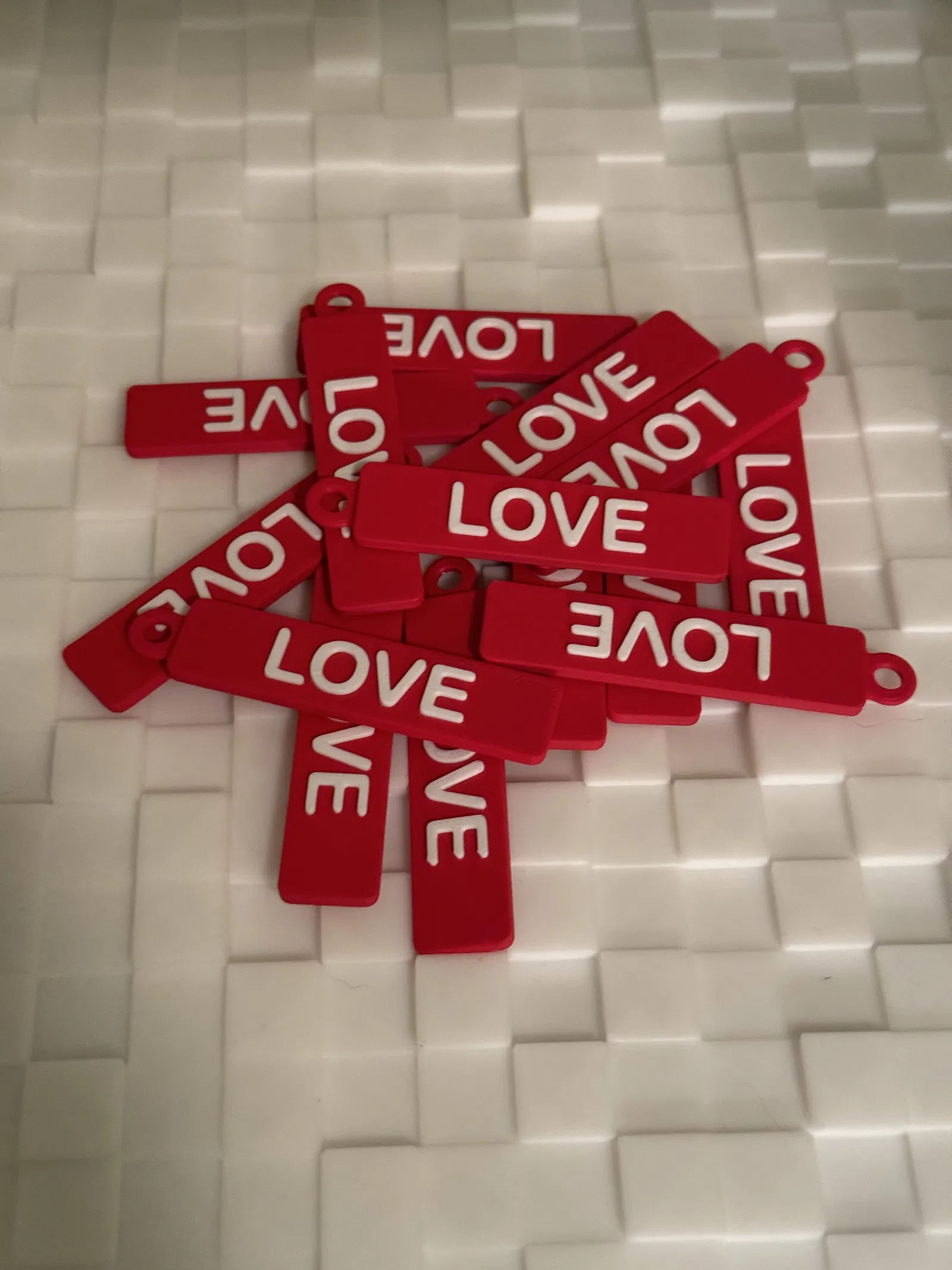Lấy cảm hứng từ mẫu "Yellow Ribbon Keychains" của Abby Math (), tui đã làm cái móc khóa này kịp cho Ngày Lễ Tình Nhân đó nha. In một cái, gắn khoen vô, rồi tặng cho người thương của mình nè! Có ba file STL cho mẫu này nha; bạn có thể in riêng cái tag và chữ bằng hai màu khác nhau, hoặc lấy file kết hợp rồi tự sơn màu cho một lần in duy nhất.