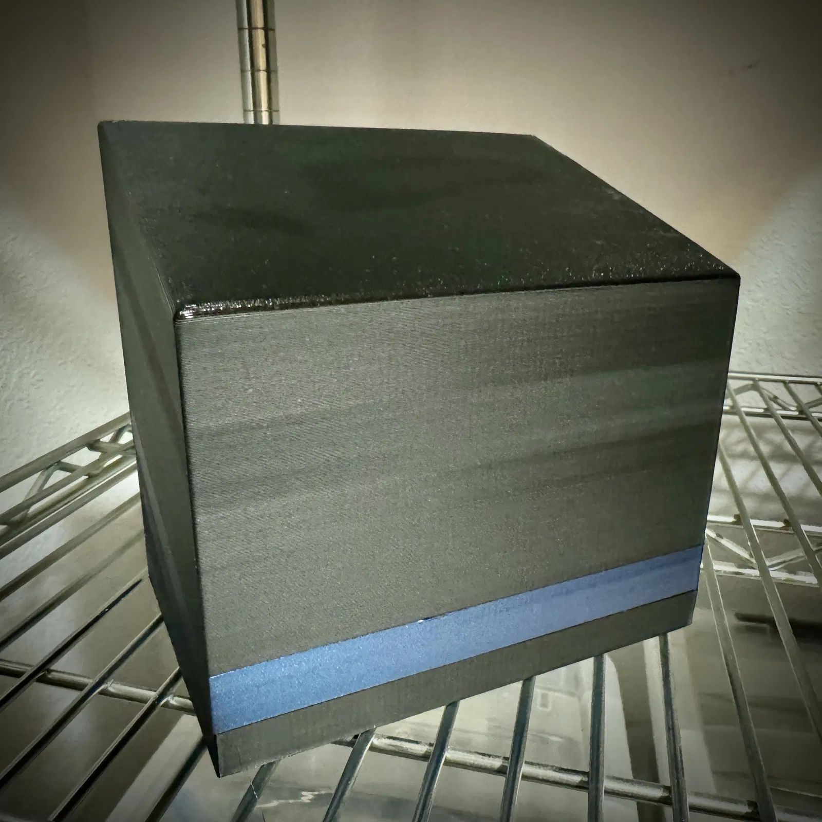 Và, mình hết sạch PETG đen lúc đang in phần nắp, nên phần còn lại là PETG xanh đậm (đó là lý do tại sao có một dải màu xanh trên hình).