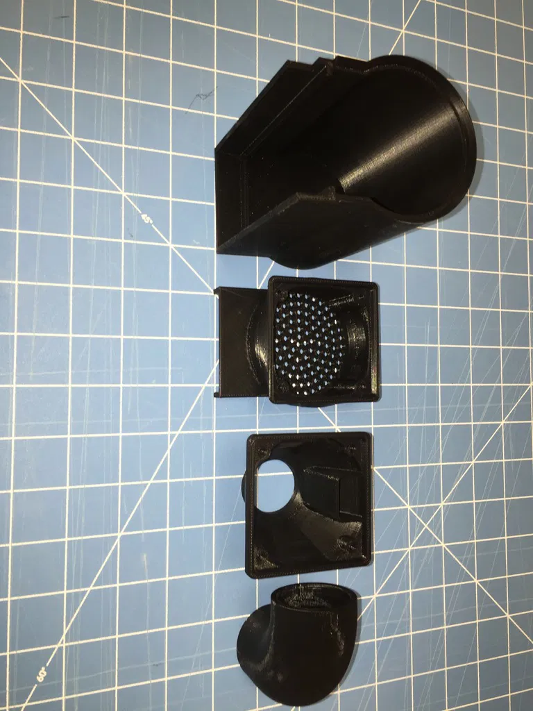 Hai bộ phận này được nối với nhau bằng keo epoxy, keo siêu dính hoặc keo nến. Cần cẩn thận căn chỉnh đúng cả hai bộ phận để bộ lọc HEPA có thể dễ dàng lắp vào phía trên của bộ phận lắp ráp. Bộ phận lắp ráp có thể đã được in thành một phần, nhưng điều đó sẽ dẫn đến việc sử dụng quá nhiều vật liệu hỗ trợ trên lưới ở phía trên khoang.