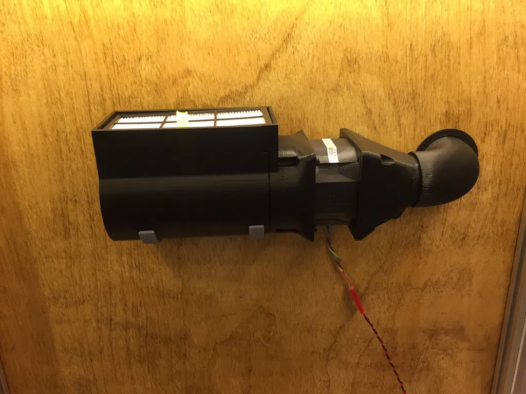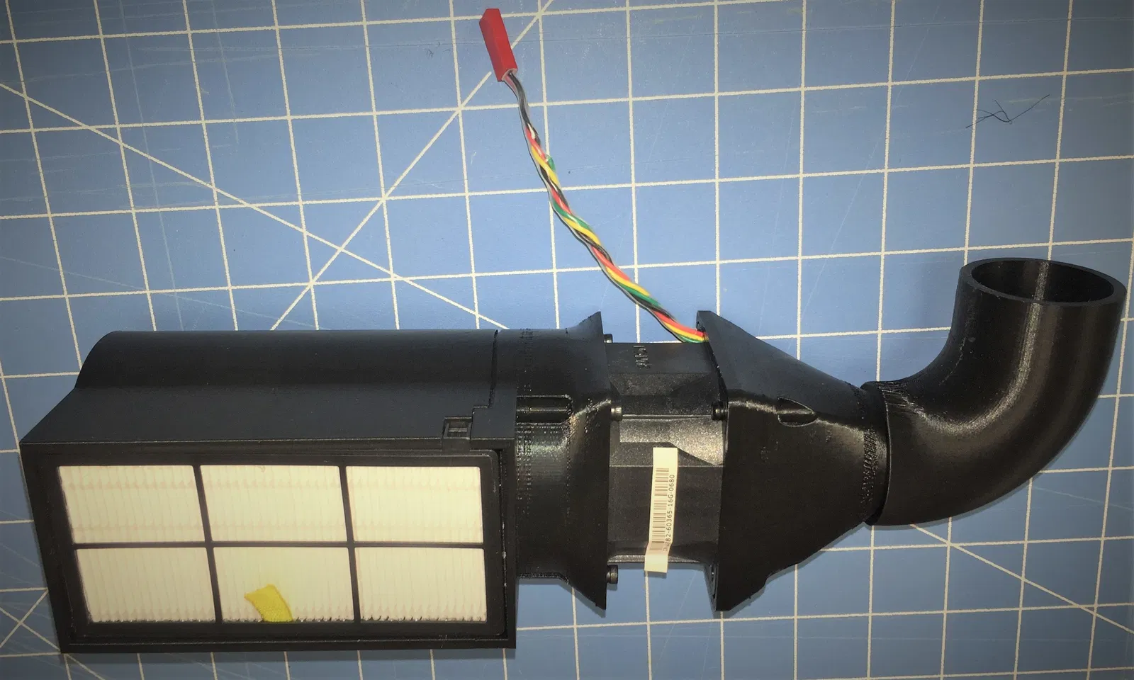 Bộ lắp ráp này dựa trên thiết kế của RJ_Make, tích hợp bộ lọc HEPA ban đầu được thiết kế cho máy hút bụi iRobot và một khoang chứa Activated Carbon Pellets. Bản sửa đổi này khác với bản của RJ_Make ở các điểm sau: