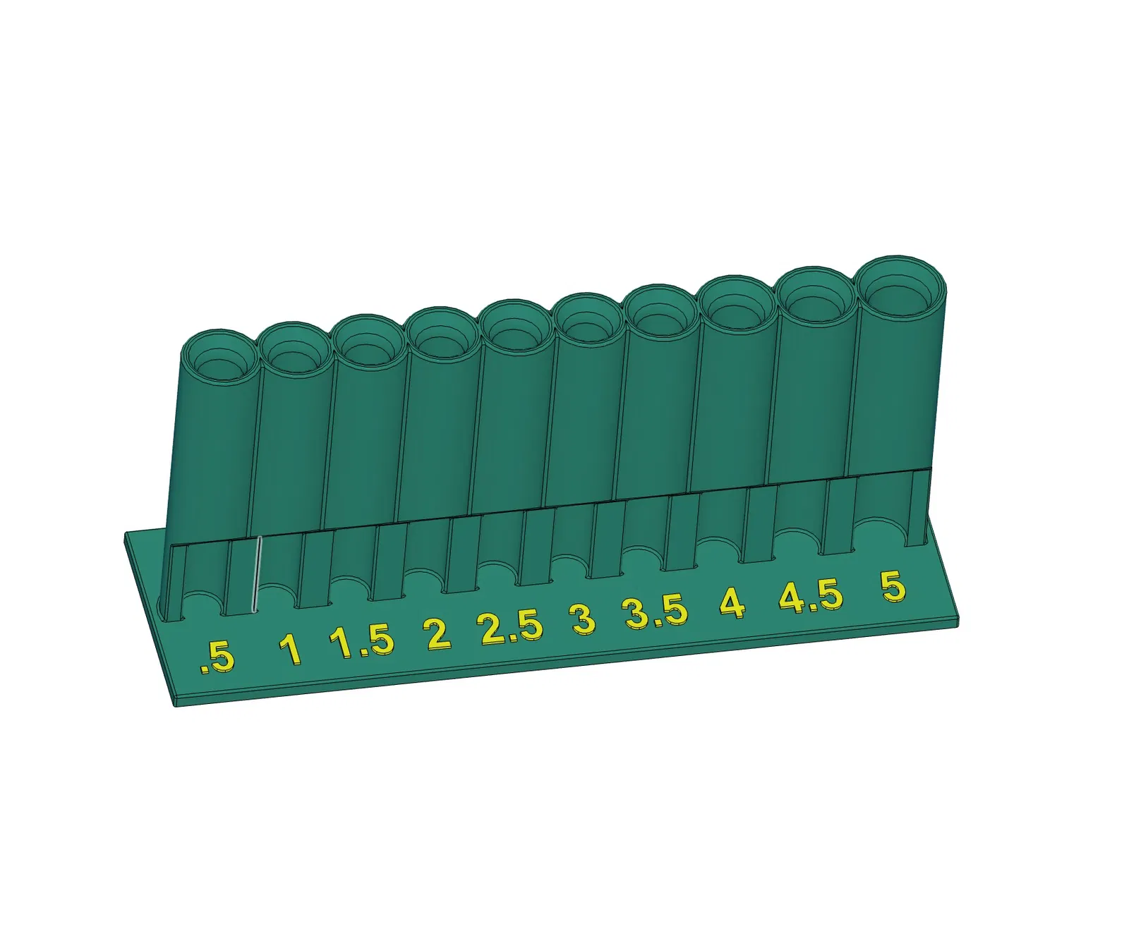 Kệ đựng bộ dụng cụ đục lỗ da 10 món, có kèm nhãn ghi kích thước. File CAD 3D Fusion và STEP đi kèm để bạn tùy chỉnh dễ dàng. Rất thích hợp để sắp xếp dụng cụ trên bàn làm việc.