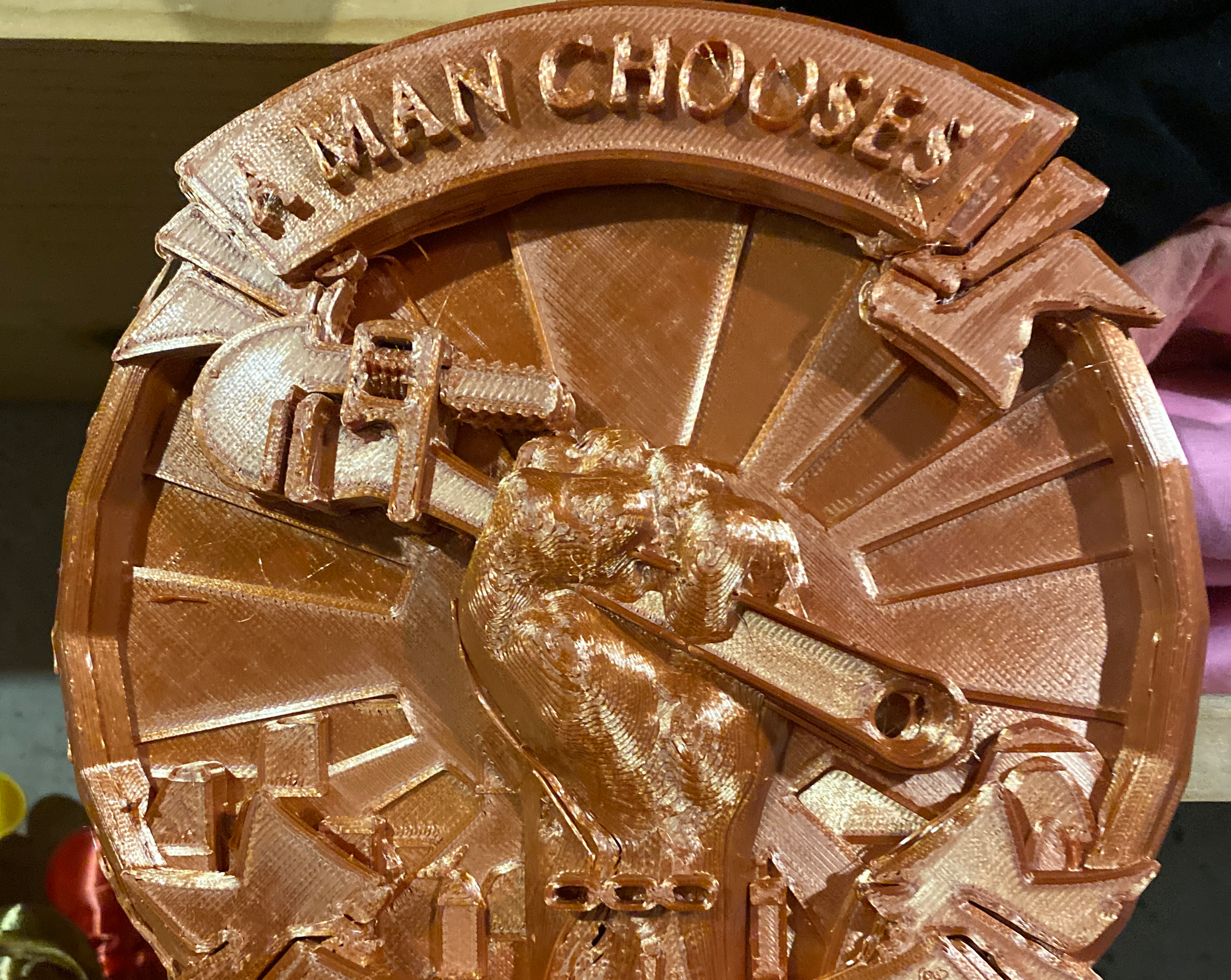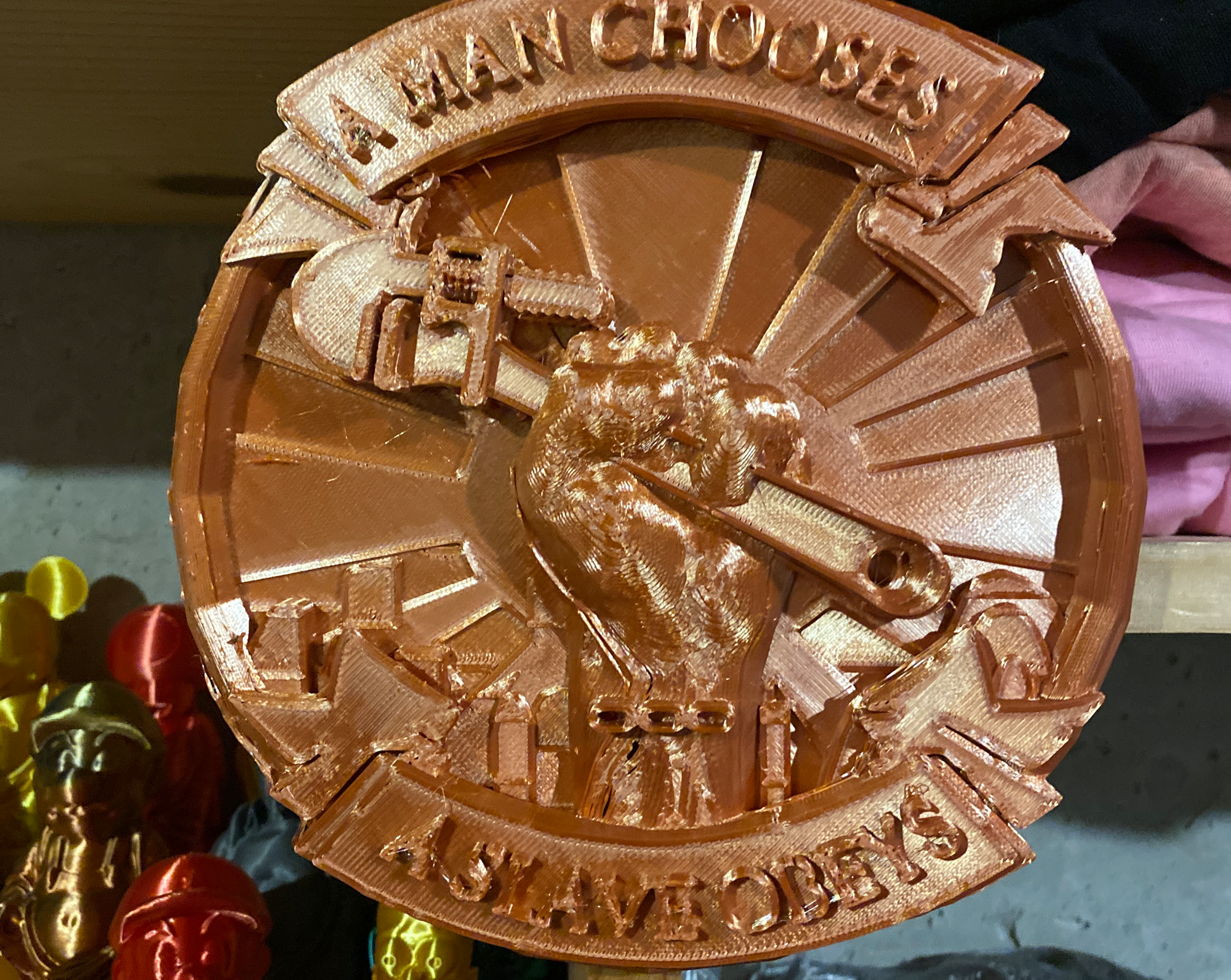 Bioshock - Một Người Chọn, Một Kẻ Nô Lệ Tuân Theo. Biển hiệu có móc treo chìa khóa ở mặt sau.