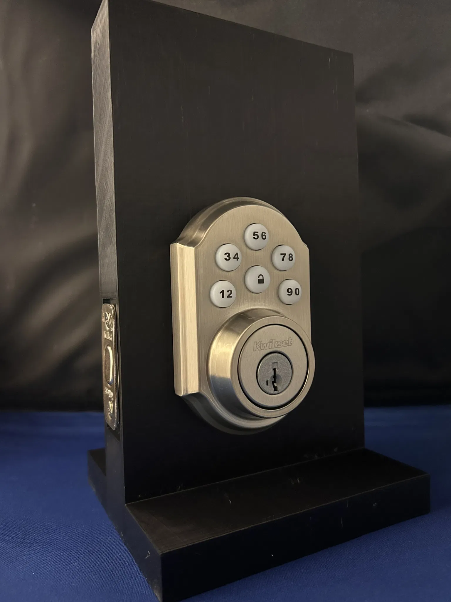 Chân đế khóa cửa dành cho các nhà cung cấp khóa cửa (đã thử nghiệm với khóa cửa Kwikset hoặc Yale). Sản phẩm này giúp trưng bày khóa cửa một cách chuyên nghiệp, tương tự như cách trưng bày tại các hội chợ.