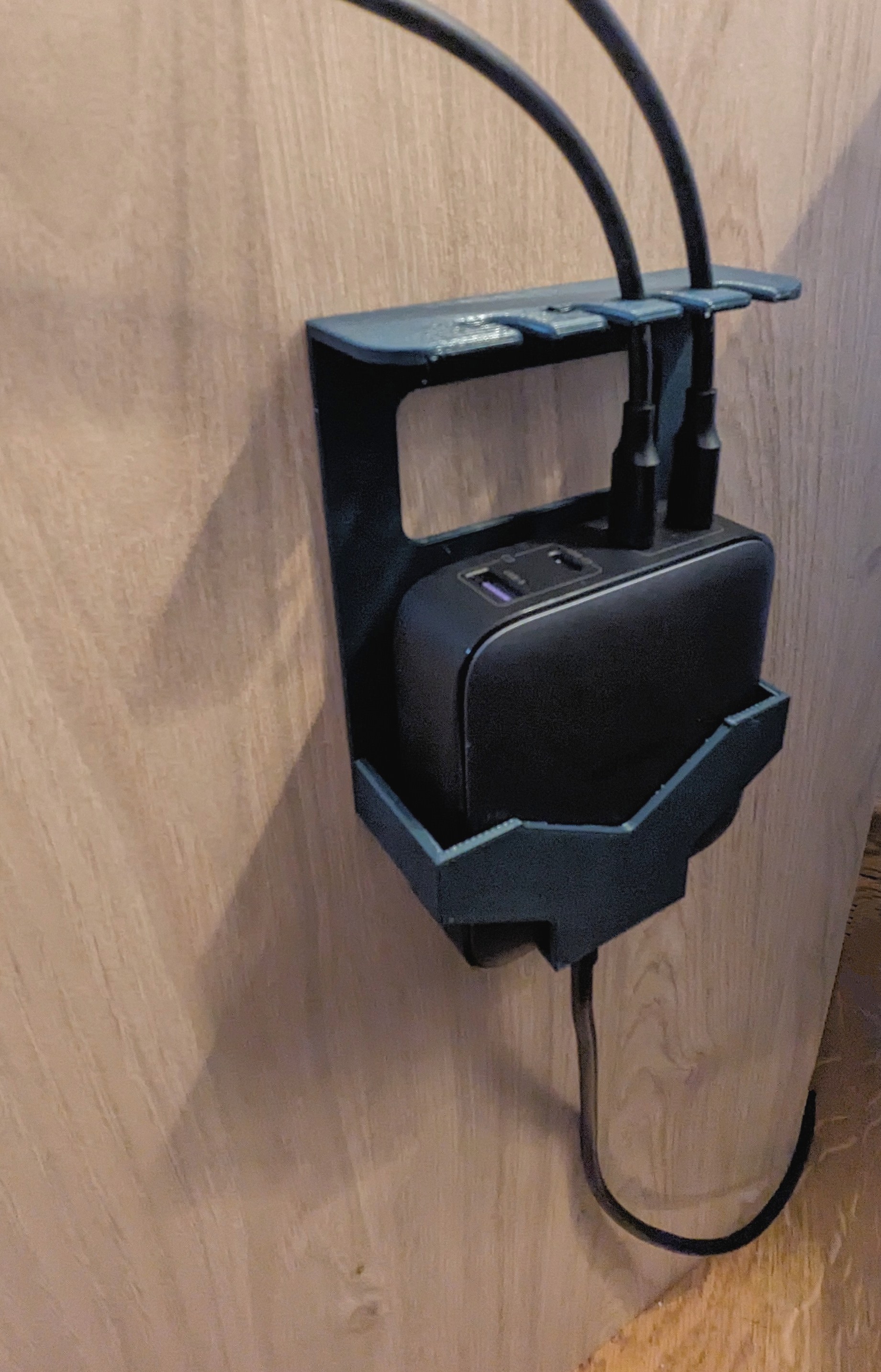 Giá đỡ dọc cho sạc Ugreen Nexode 100W, có khe giữ cáp chống hư hại đầu cắm USB C. Cần in với "supports" và dán tường bằng băng dính hai mặt. Khe giữ cáp được thiết kế để cố định dây cáp Ugreen 100W PD.