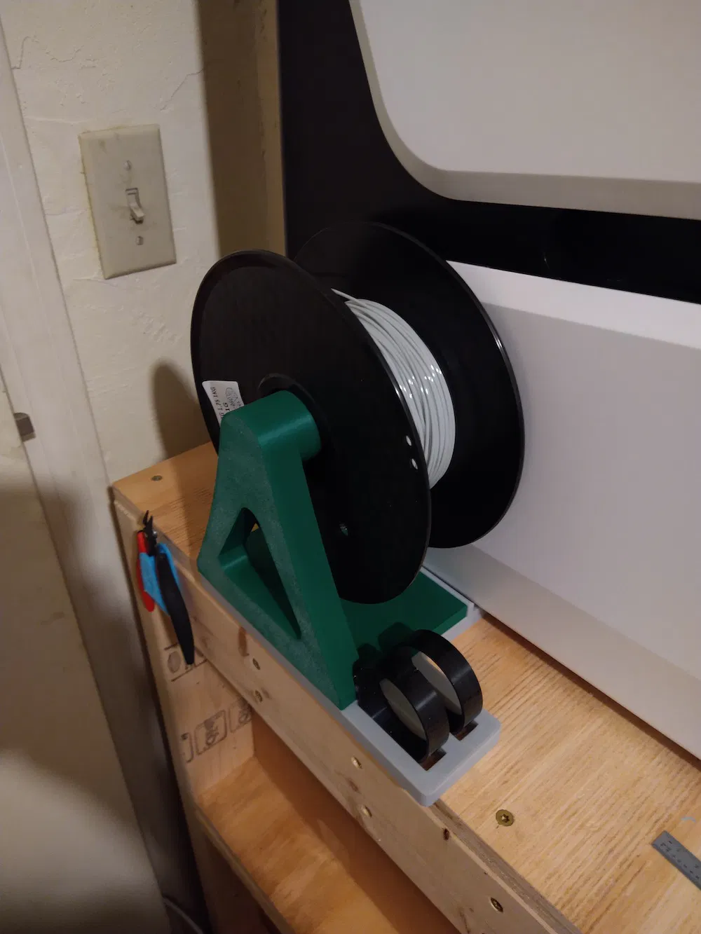 In được bằng bất kỳ vật liệu cứng nào. Mấy cái test in thì in bằng ABS, nhưng mà PLA với PETG thì cũng xài tốt như nhau thôi. Phần đế hộp sấy thì in không cần support. Phần đế giữ cuộn dây thì sẽ cần support ở phần đế thôi, nếu in nằm ngang.