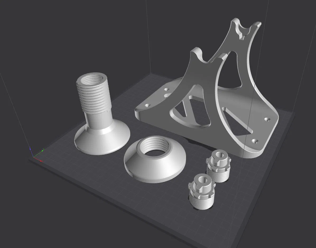 Lần đầu tiên in vòng bi nhựa, tôi đã ấn tượng về hiệu suất của chúng với chi phí và công sức gần như bằng không. Sau đó, tôi nhận thấy hầu hết các giá đỡ ống chỉ trên mạng đều sử dụng vòng bi kim loại (điều này cũng không có gì ngạc nhiên), vì vậy tôi đã nảy ra ý tưởng về giá đỡ ống chỉ hoàn toàn bằng nhựa, bao gồm cả vòng bi, và đây là sản phẩm ra đời. Nó có thể dùng được cho nhiều loại ống chỉ, nhưng với loại trên 1kg thì có thể không hoạt động tốt (tôi không có ống chỉ lớn như vậy nên không biết). Tôi chỉ in các bộ phận thử nghiệm để kiểm tra xem mọi thứ có vừa vặn không, và... đúng vậy. Đối với toàn bộ mô hình, tôi đang chờ vật liệu, hứa sẽ thêm ảnh khi hoàn thành. Tra một ít dầu máy vào vòng bi, hoặc bất kỳ chất bôi trơn nào, nó sẽ giúp hoạt động êm hơn và quay dễ dàng hơn.