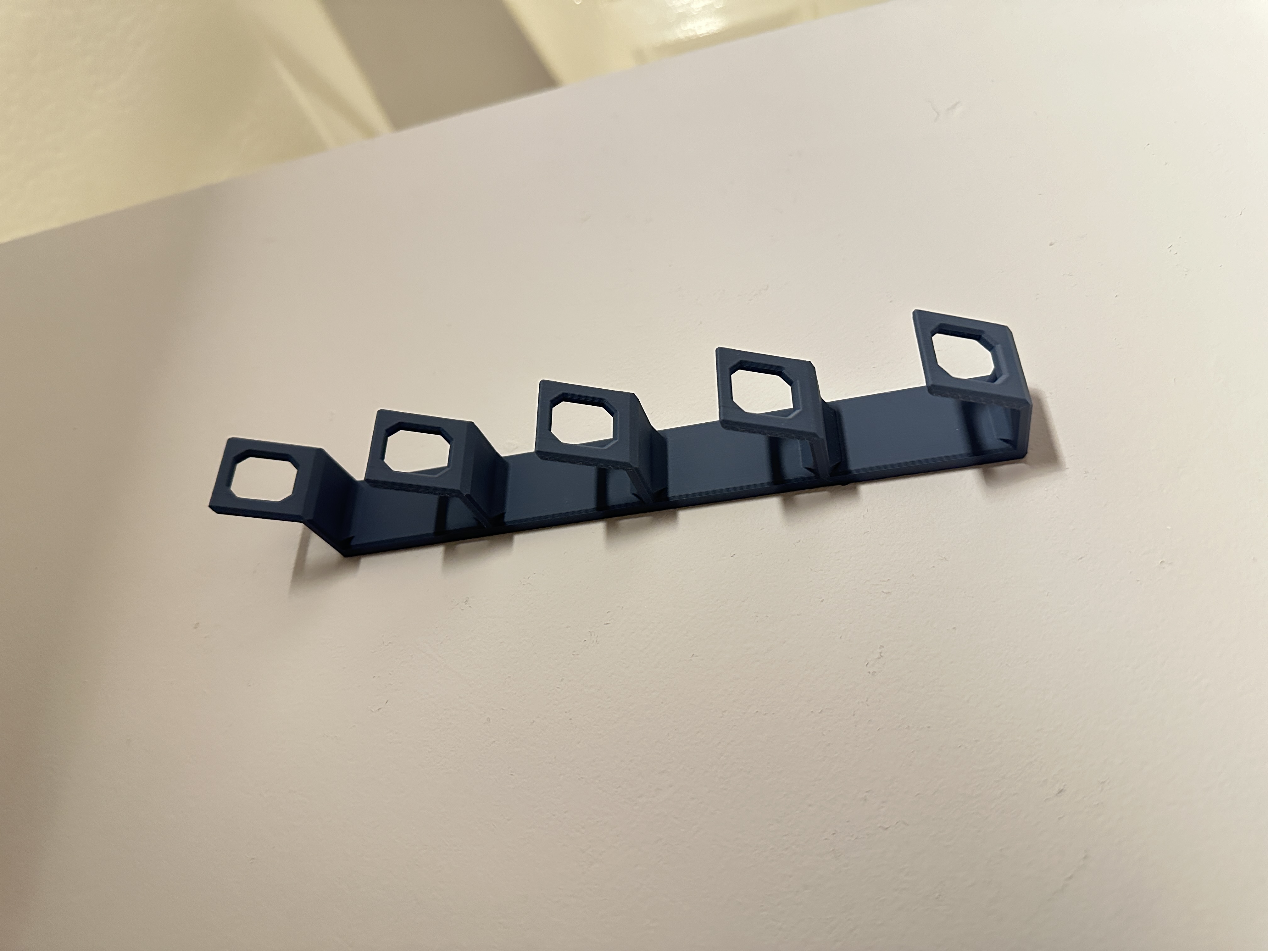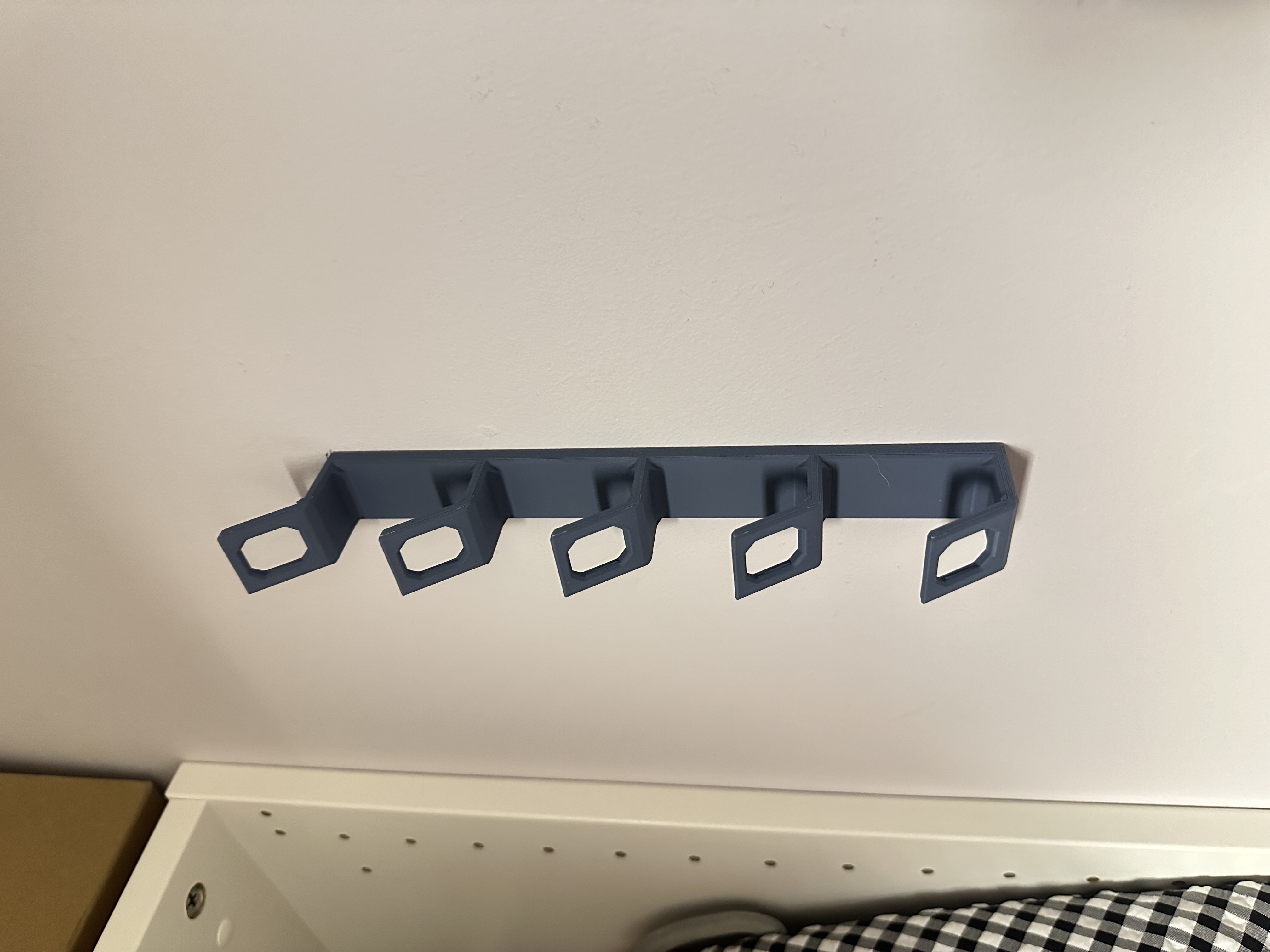 Giải pháp đơn giản để cất giữ nón/mũ của bạn, dễ dàng in ấn và sử dụng. Dán lên tường bằng băng dính 2 mặt, giữ 5 cái mũ chắc chắn. In bằng PLA, không cần support.