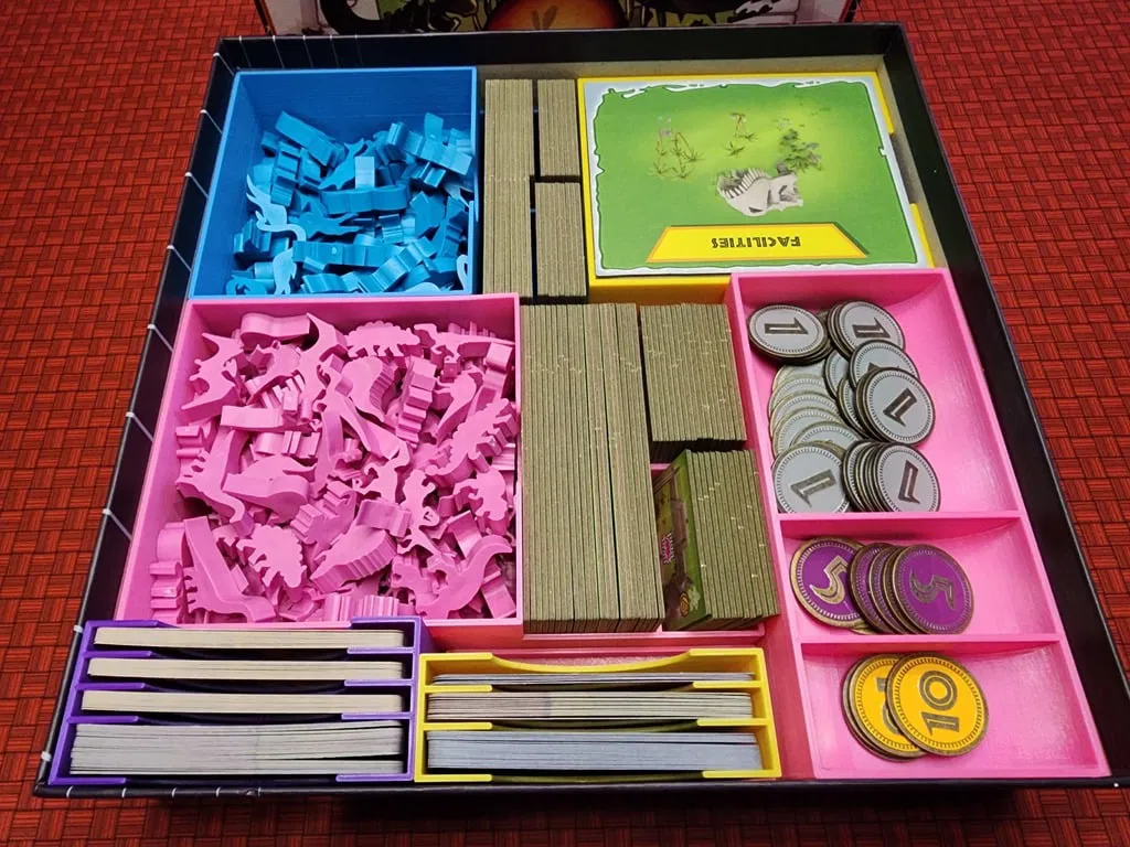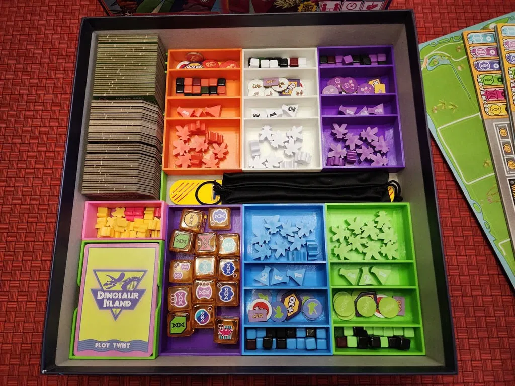 Bản chỉnh sửa bộ tổ chức Dinosaur Island và Totally Liquid, sắp xếp lại để tối ưu không gian và dễ chuẩn bị game hơn. Chứa tất cả các thành phần, bao gồm cả các loại meeples và thẻ. In ấn bằng PLA, không cần supports.
