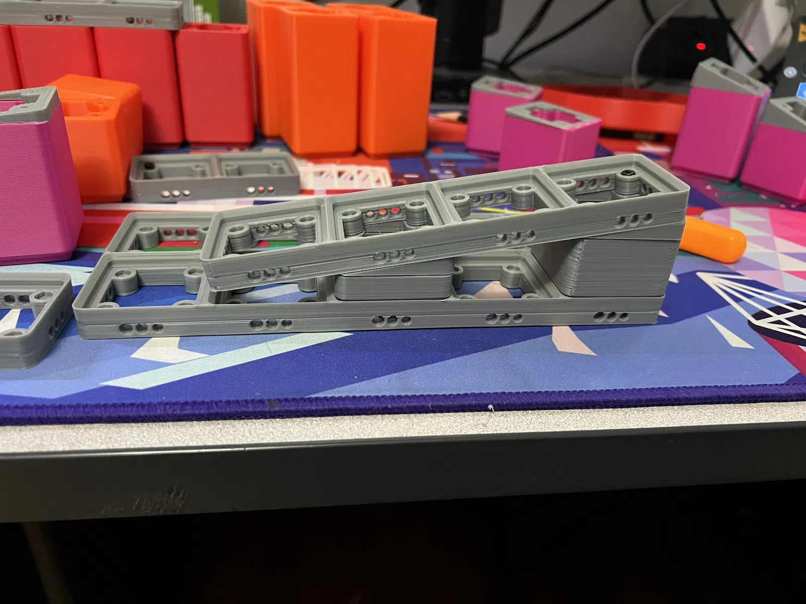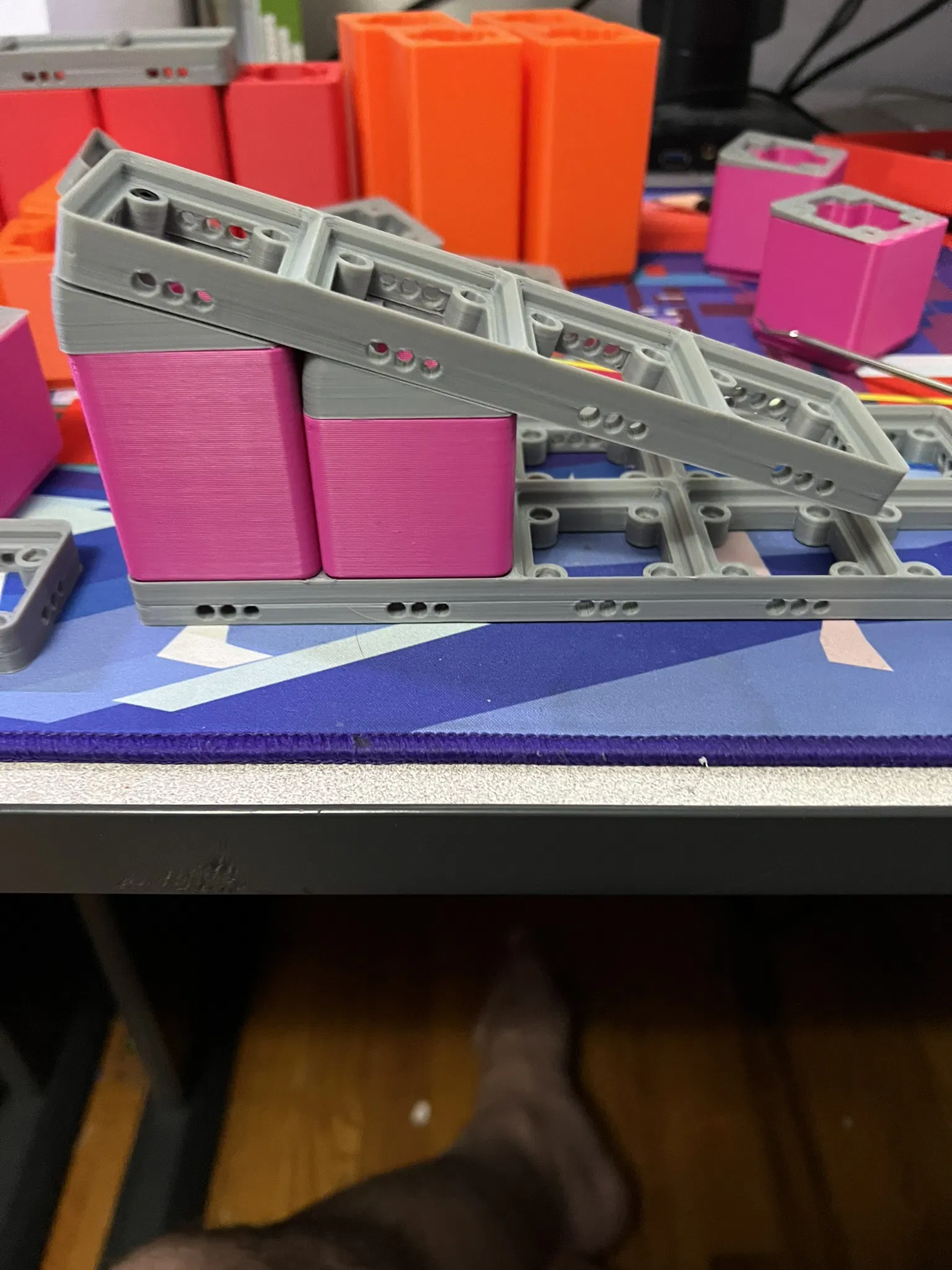 Do tính chất cong của các bộ phận này và tính chất KHÔNG cong của ốc vít, bạn nên gắn chúng vào Chân / Tấm nền bằng keo và/hoặc hàn nhựa. Cá nhân tôi đã sử dụng bút 3D. Ngoài ra, với cách hoạt động của tam giác, không phải tất cả các lỗ sẽ thẳng hàng trên tấm đế nghiêng. Tôi xin lỗi, bạn có thể góp ý với Hình học.